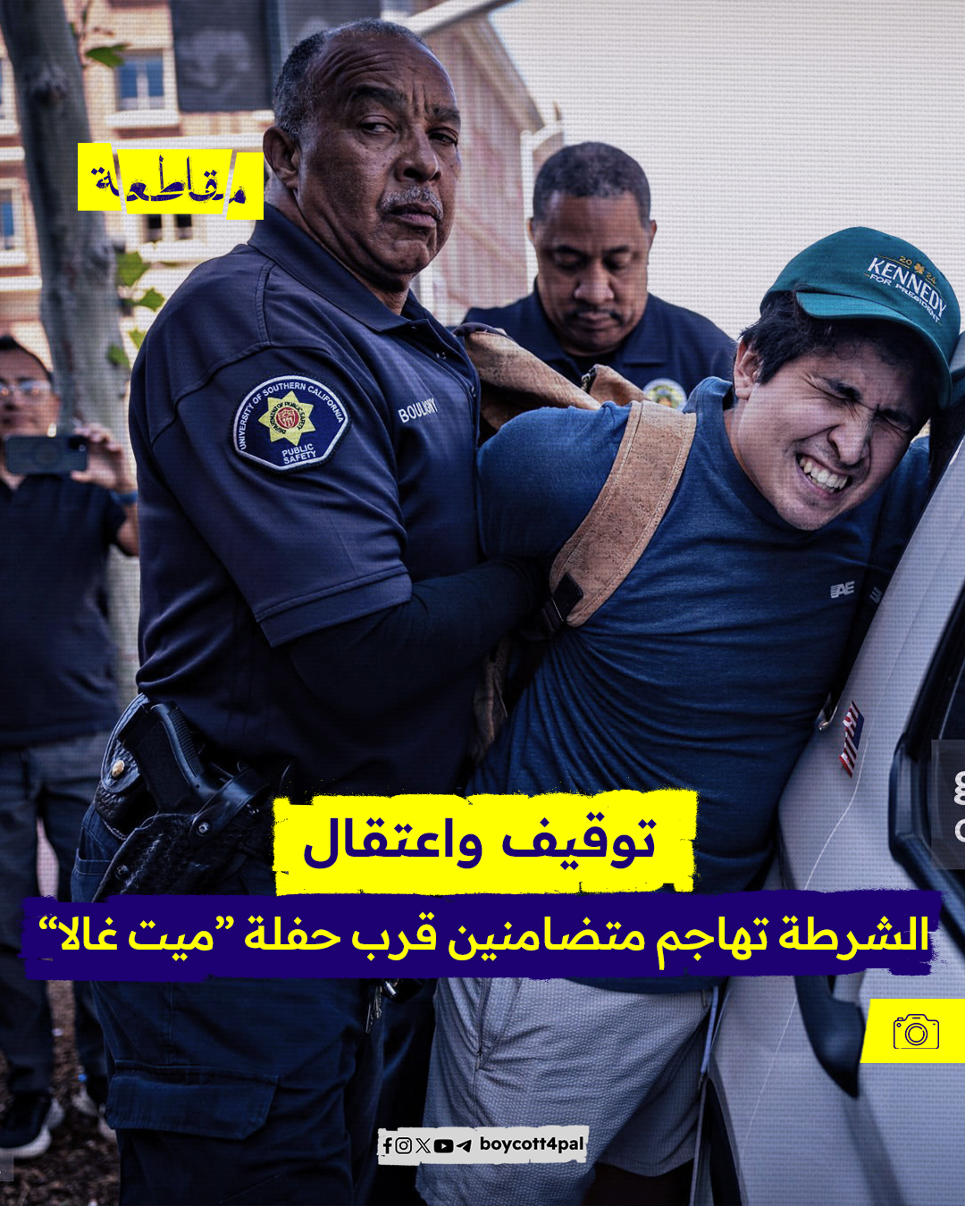 نقلت شبكة "سي إن إن" الأمريكية عن جامعة جنوب كاليفورنيا قولها إن "ضباط شرطة اقتحموا مخيم الاحتجاج في حرم الجامعة"؛ وفي رسالة موجهة للطلاب المتظاهرين، قالت الجامعة في منشور على حسابها عبر منصة إكس: "إذا كنتم متواجدين داخل الحرم الجامعي، يرجى المغادرة".
