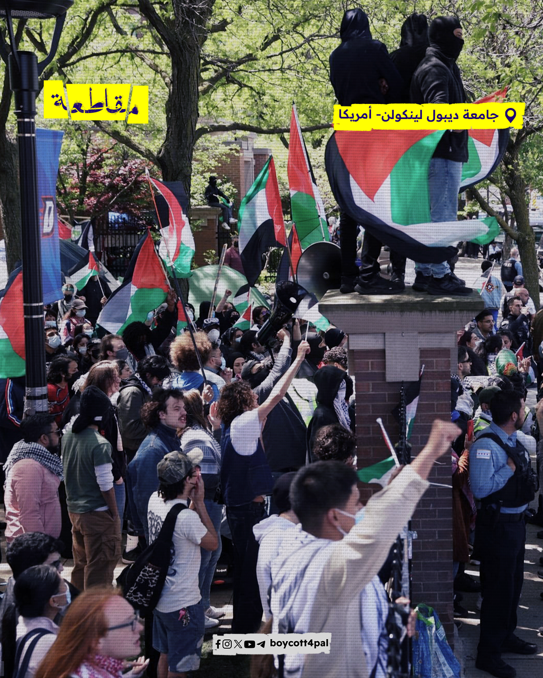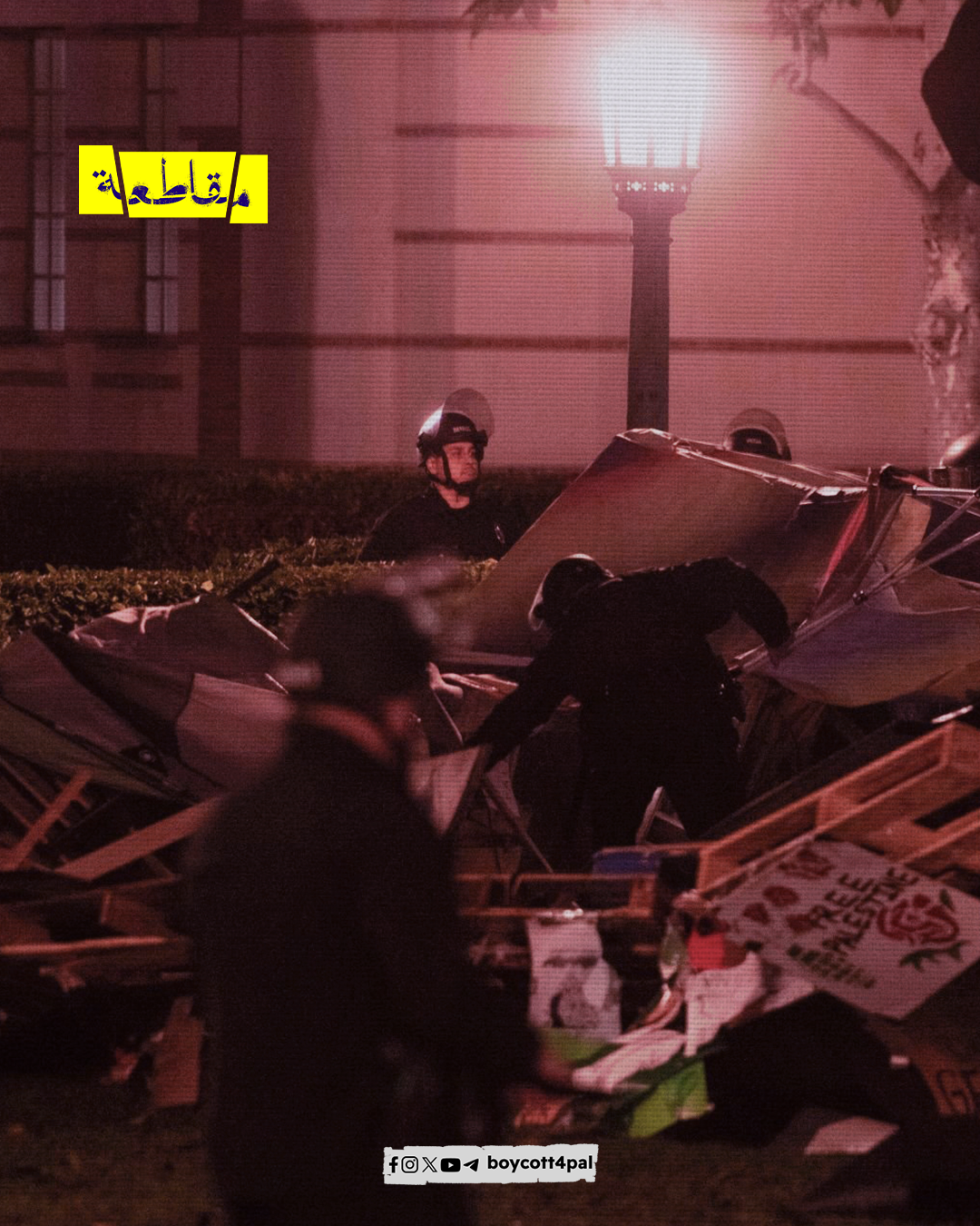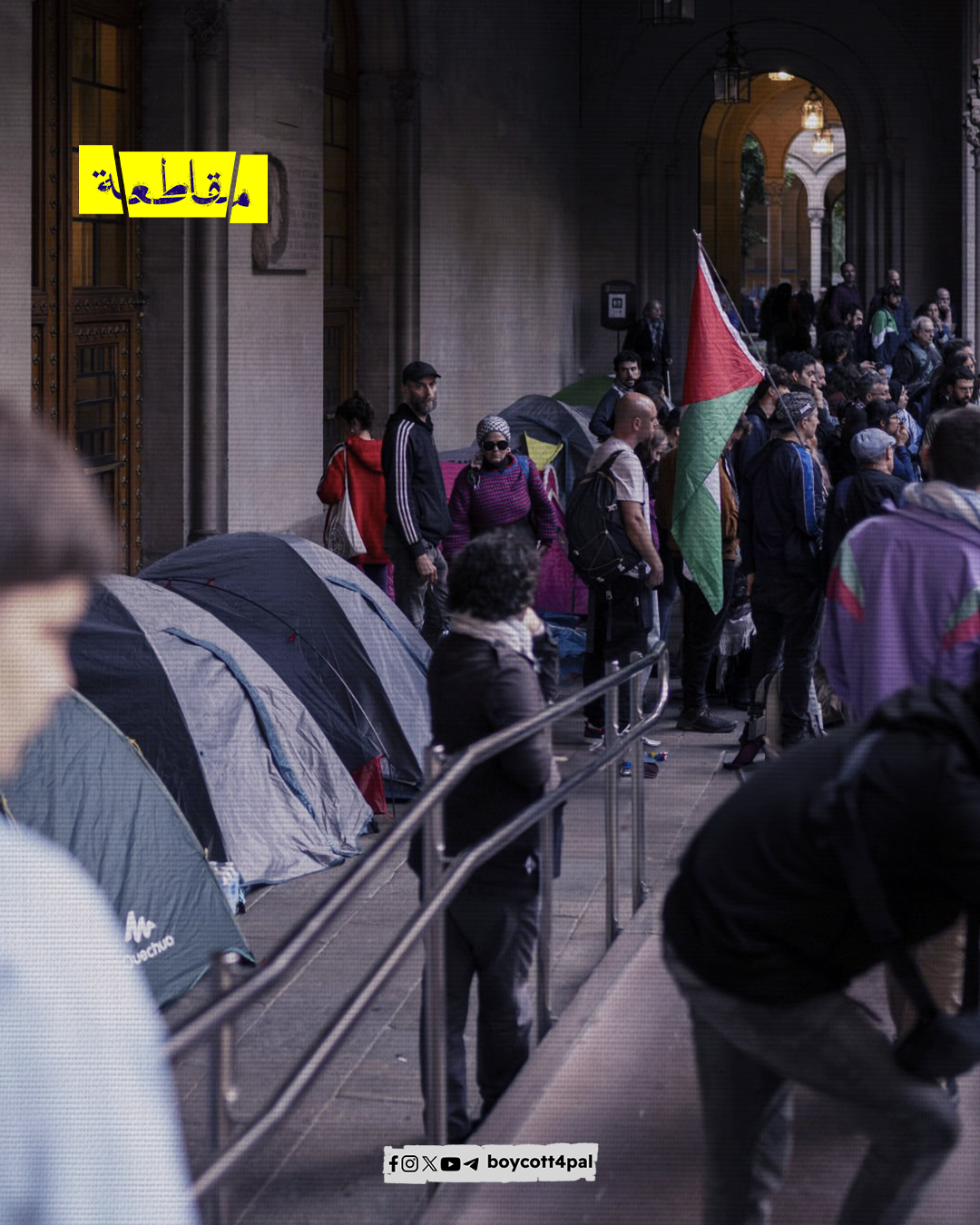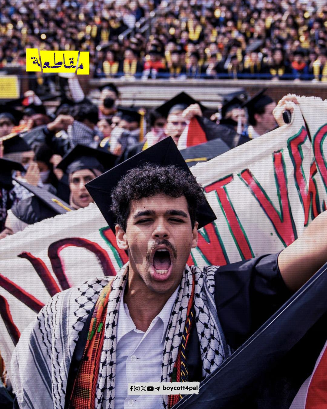 المدن العربية والغربية بما فيها الجامعات تواصل أنشطتها وفعاليات اعتصامها حتى تحقيق انتفاضة من أجل إنهاء الإبادة في قطاع غزة، وطرد شركاء الاحتلال الإسرائيلي من حرم الجامعات.