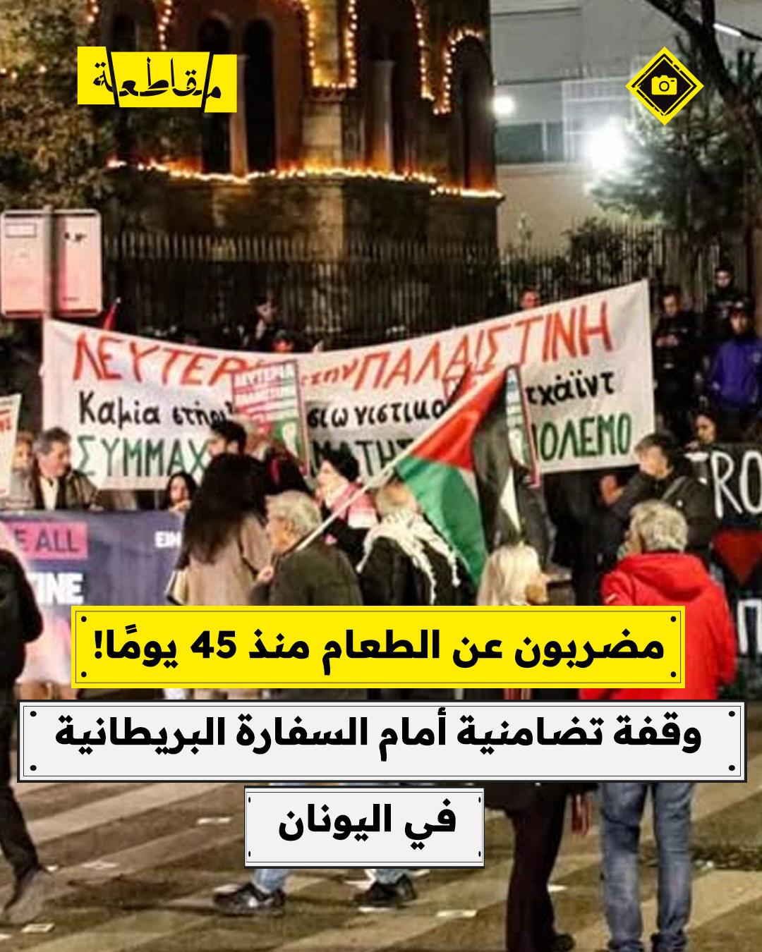 نظمت حركة Anti-Imperialist Front في اليونان وقفة تضامنية أمام السفارة البريطانية في أثينا دعماً للمضربين عن الطعام من المعتقلين السياسيين الفلسطينيين في السجون البريطانية.