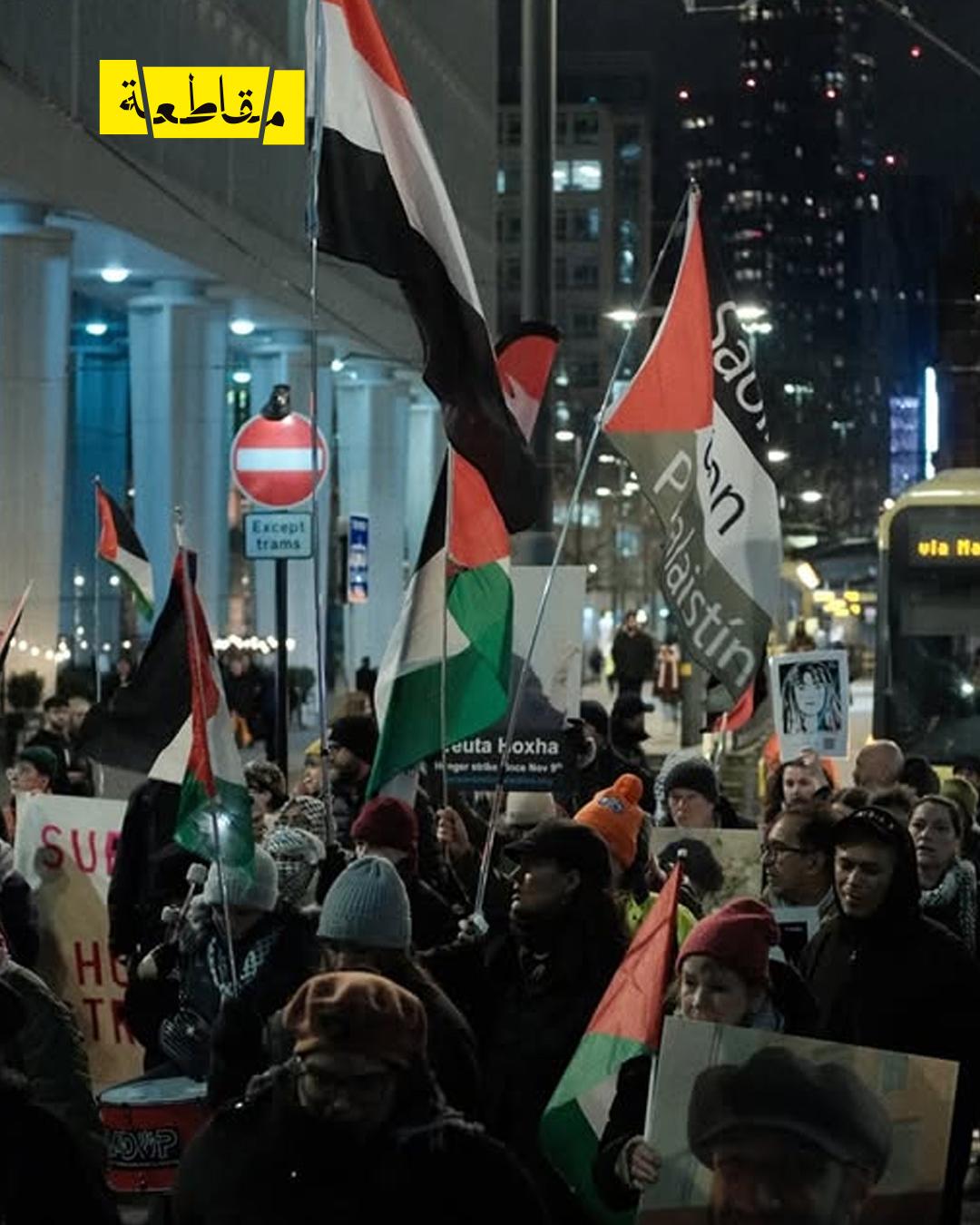 شهدت شوارع غلاسكو مسيرة حاشدة تضامنية مع المضربين عن الطعام من نشطاء “فلتون24”. انطلقت المسيرة وسط حشود متسوقي عيد الميلاد، حيث حرص المتظاهرون على تذكير الجميع بأصول الميلاد الفلسطينية. رفع المشاركون لافتات وشعارات داعمة للمضربين عن الطعام، مؤكدين ضرورة محاسبة الاحتلال الإسرائيلي على انتهاكاته وحقوق الفلسطينيين في الحرية والعدالة.