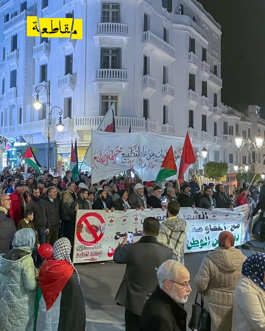 نظمت جمعية المبادرة المغربية للدعم والنصرة أمس الأحد احتجاجًا في مدينة طنجة المغربية، بمناسبة الذكرى الخامسة لتوقيع اتفاق التطبيع بين بعض الدول العربية وكيان الاحتلال. وهدفت المظاهرة إلى التعبير عن رفض التطبيع وتعزيز التضامن مع الشعب الفلسطيني، لا سيما سكان قطاع غزة الذين يواجهون استمرار العدوان والحصار.