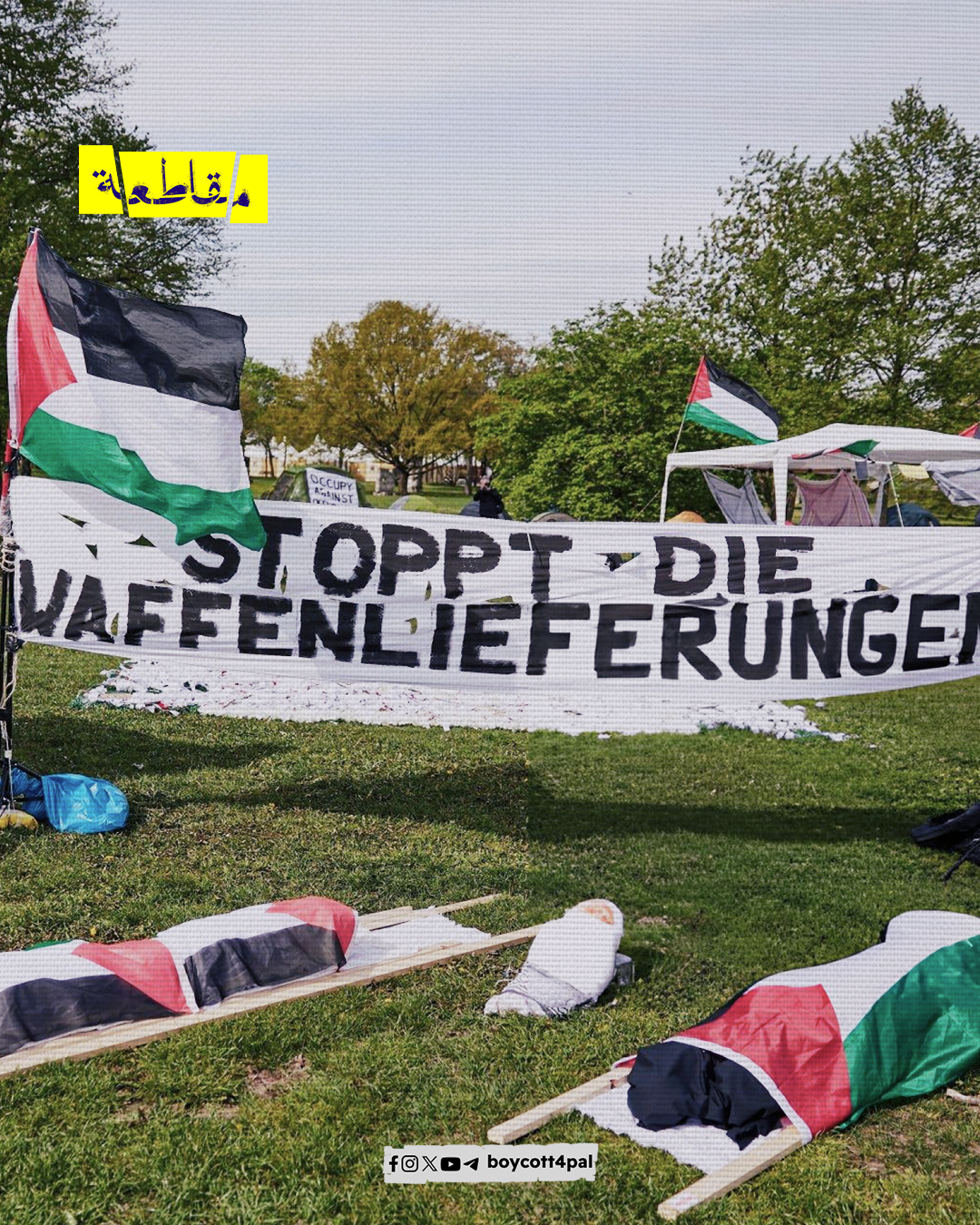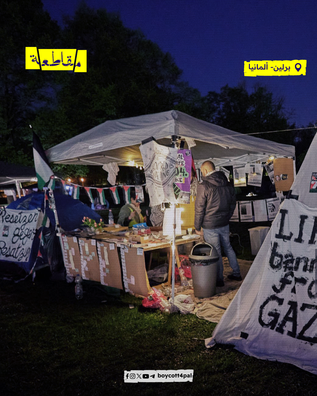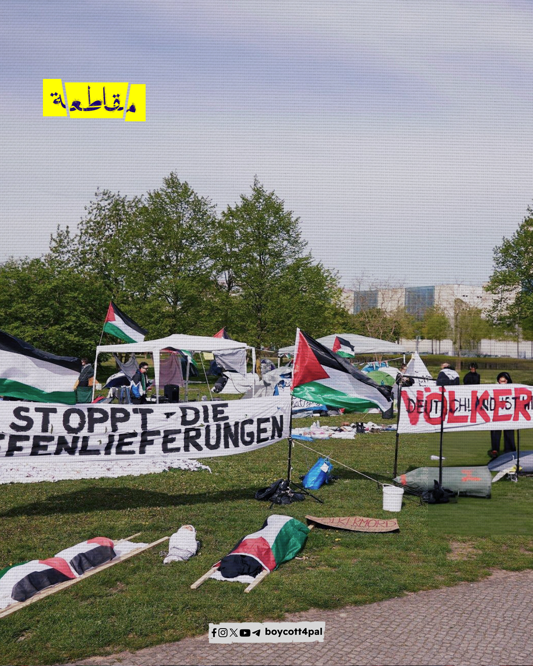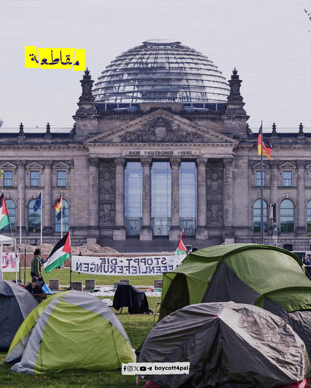 منذ يوم الاثنين، يقيم الناشطون المؤيدون لفلسطين مخيمًا احتجاجيًا أمام مبنى الرايخستاغ وهو مبنى البرلمان السابق في الرايخ الألماني حيث يعد بمثابة برلمان حقيقي للنظام النازي، ويحمل المخيم شعار "الاحتلال ضد الاحتلال" منتقدين "الدور النشط لألمانيا في الحرب في غزة".