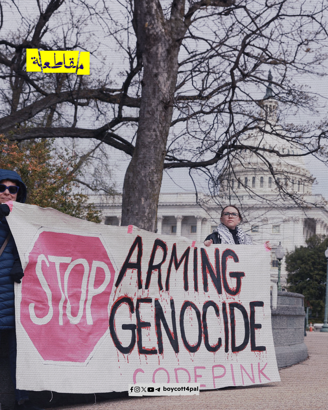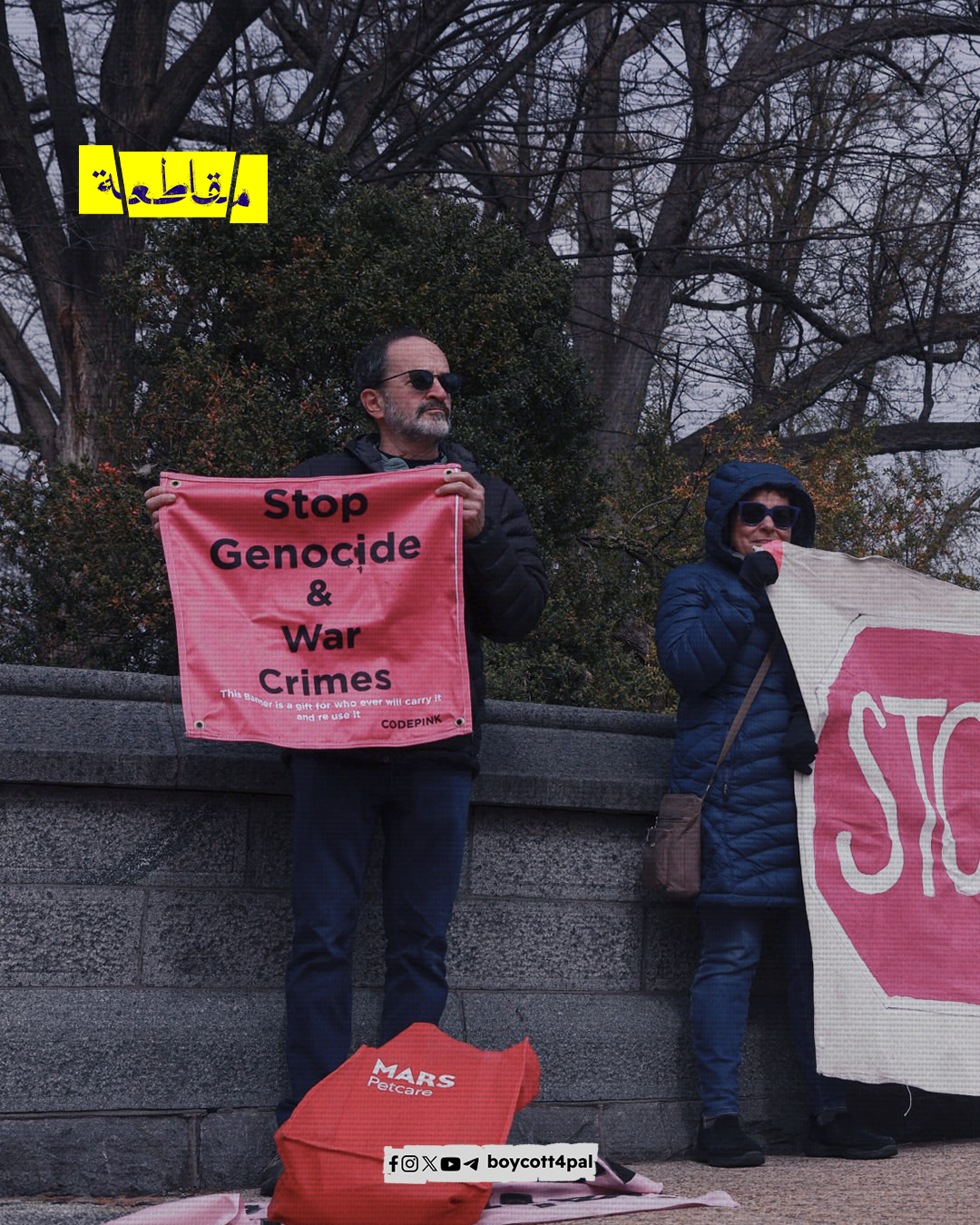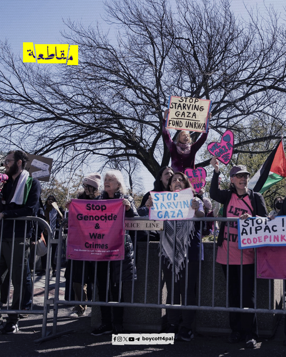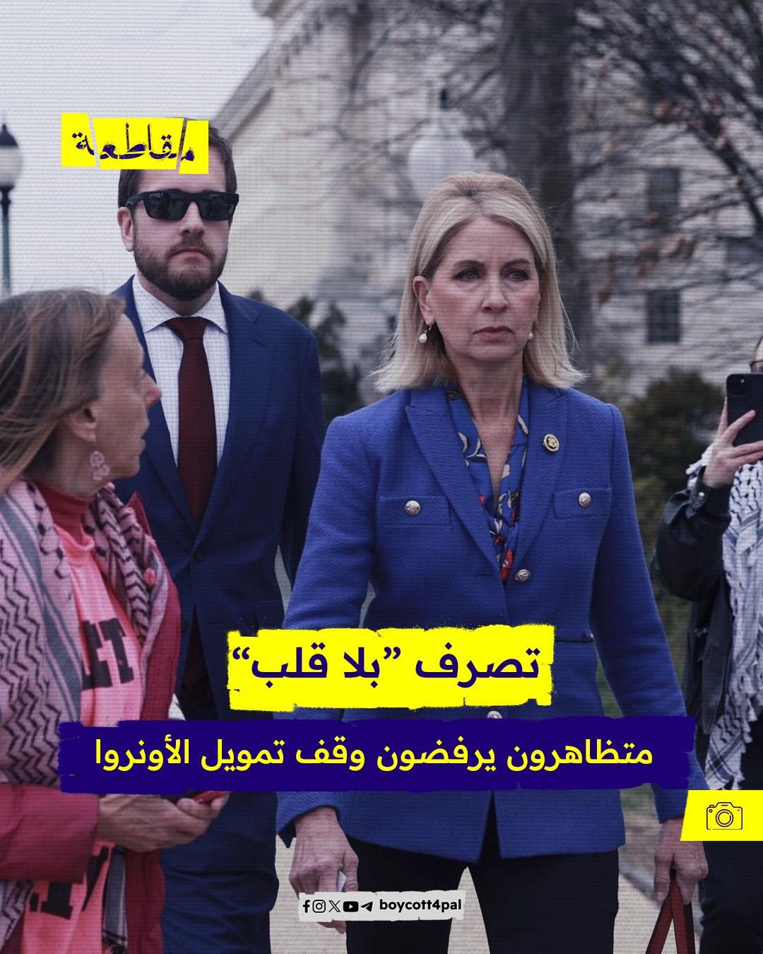 المتظاهرون توجهوا إلى مبنى الكابيتول لإبلاغ المشرعين في مجلس النواب بأن قرارهم بتمرير مشروع قانون شامل للإنفاق يتضمن وقف التمويل الأمريكي لوكالة اللاجئين الفلسطينيين التابعة للأمم المتحدة "بلا قلب"، مطالبين بوقف الدعم العسكري للاحتلال الإسرائيلي.