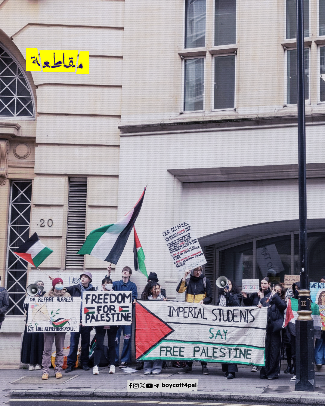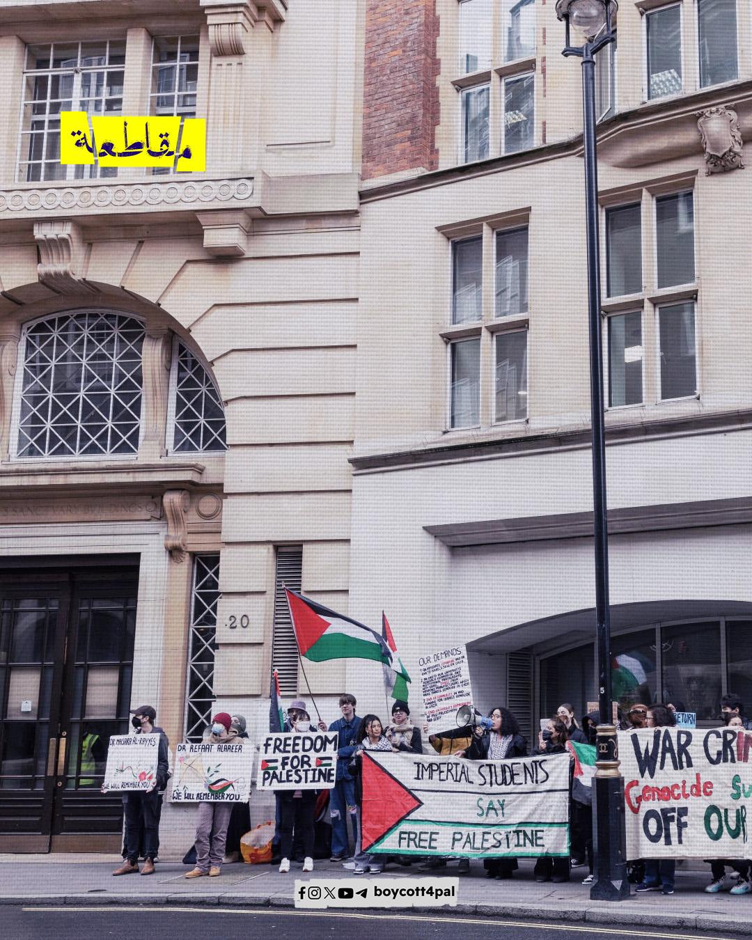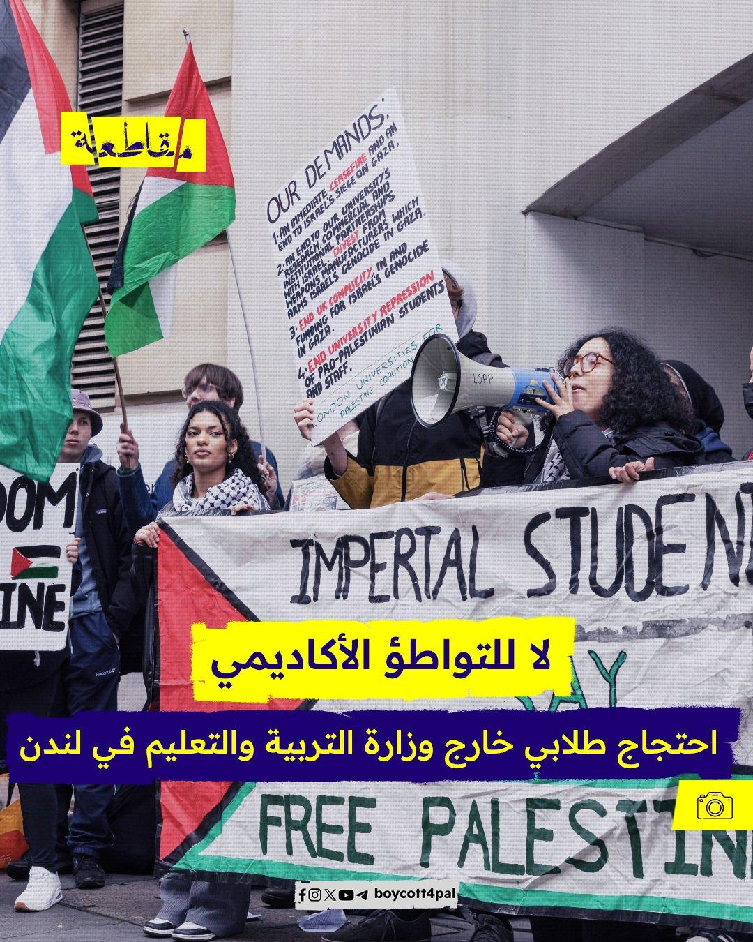 تظاهر الطلاب المؤيدون لفلسطين خارج وزارة التعليم داعين إلى تبني الدعوة إلى وقف فوري لإطلاق النار في غزة ورفع “إسرائيل” الحصار عن غزة، وإنهاء الروابط بين جامعات المملكة المتحدة والاحتلال ووقف قمع آراء الطلاب والموظفين المؤيدين للفلسطينيين.
