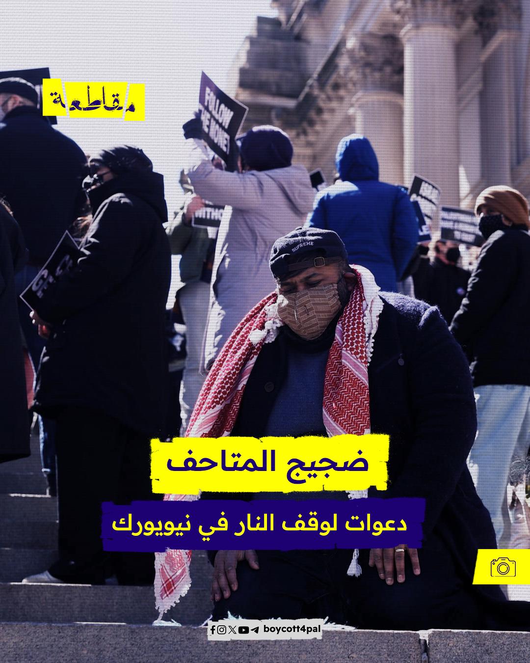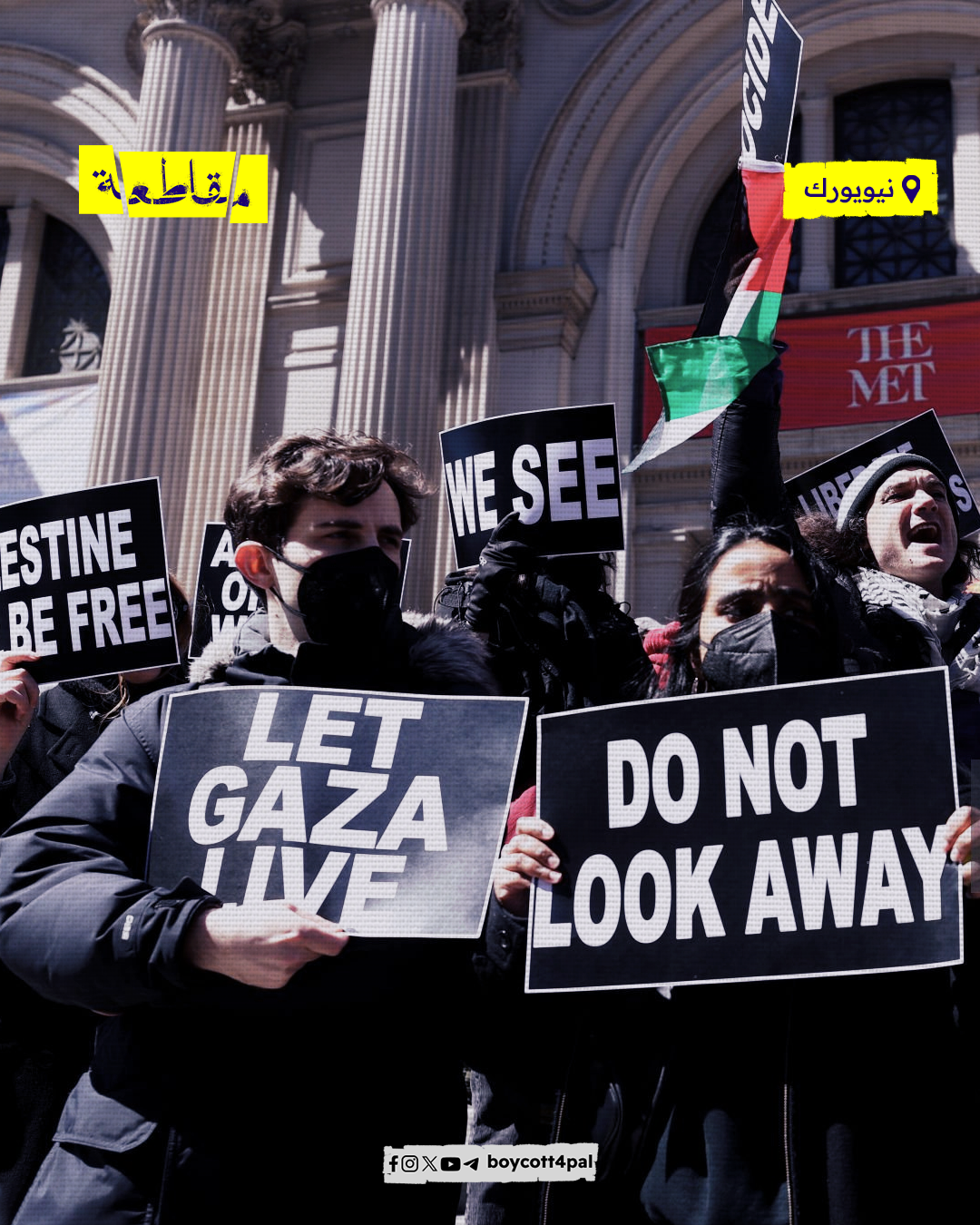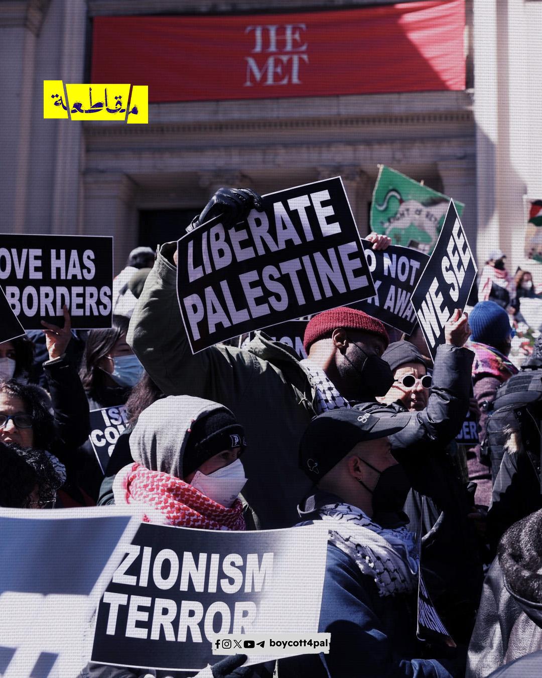 بدلاً من أن تكون ساحات المتاحف صامتة كعادتها، تجمع المئات من المؤيدين للفلسطينيين، حاملين لافتات وأعلام، على درجات متحف متروبوليتان، ورفع المحتجون عشرات الشعارات المؤيدة لغزة والرافضة لحرب الاحتلال الإسرائيلي وجرائمه.