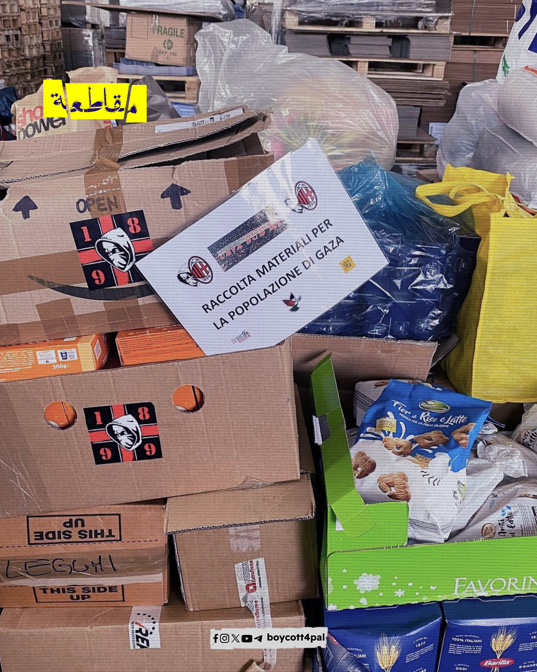 أعلنت رابطة مشجعي نادي ميلان الإيطالي قبل أيام في بيان نُشر عبر "إنستغرام"، عن تنظيمها حملة لمساعدة أهالي قطاع غزة في ظل الظروف الصعبة التي يعيشونها حالياً، وقامت الرابطة باستلام كميات كبيرة من المساعدات التي تبرع بها أنصار النادي خلال الحملة التي أقيمت في محيط استاد السان سيرو معقل الفريق.