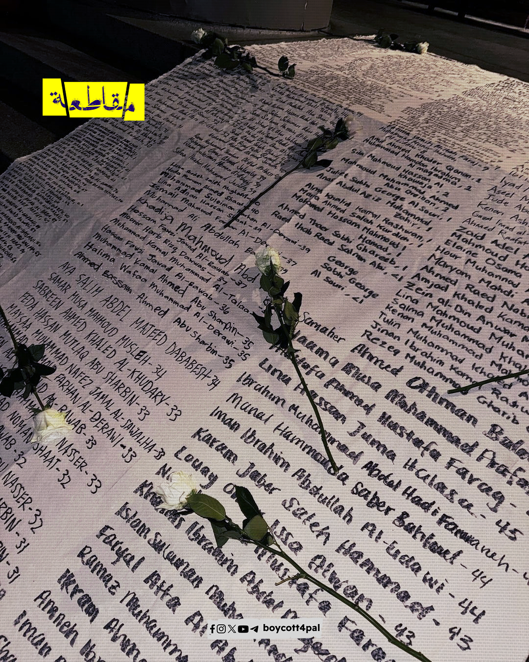 نظّم طلاب الجامعة الأمريكية وقفة احتجاجية ليليّة لتأبين أكثر من 30 ألف شهيدًا قتلتهم "إسرائيل" في غزة.