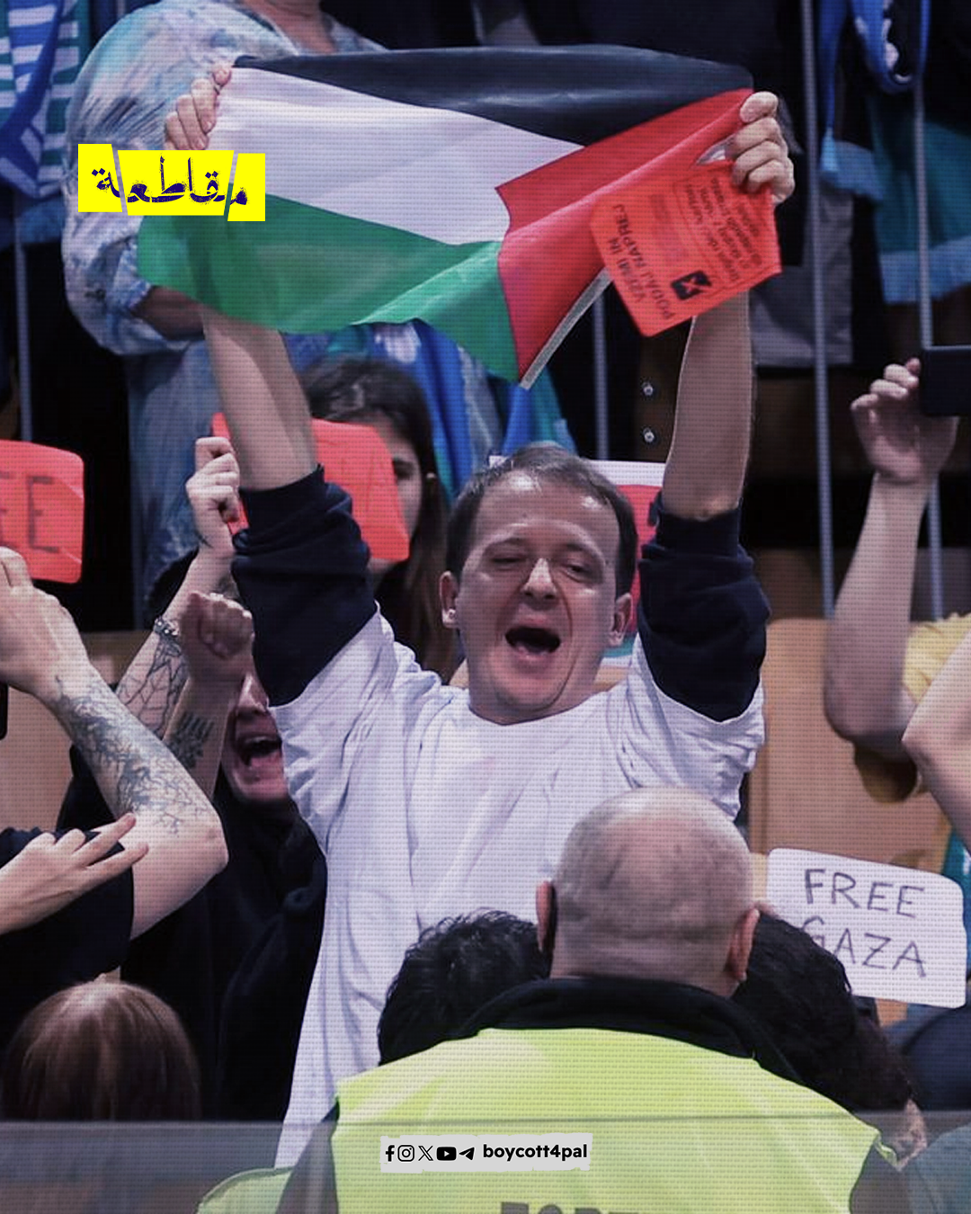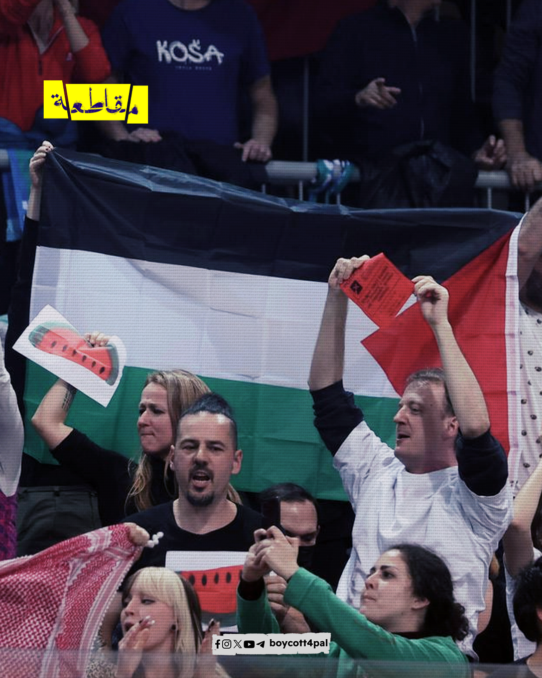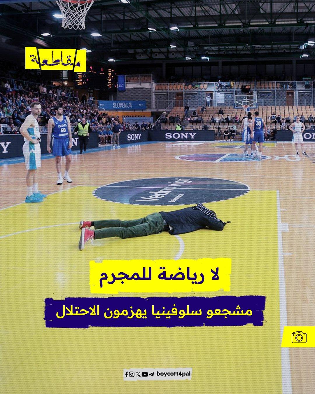 اقتحم أحد المشجعين مرتديًا الكوفية، الملعب قبل بداية الشوط الثاني لمباراة كرة السلة، وطوال المباراة هتف المشجعون السلوفينيون لفلسطين ملوحين بالأعلام واللافتات.