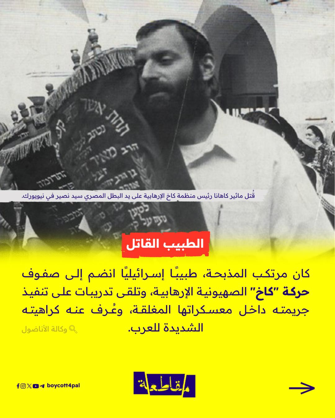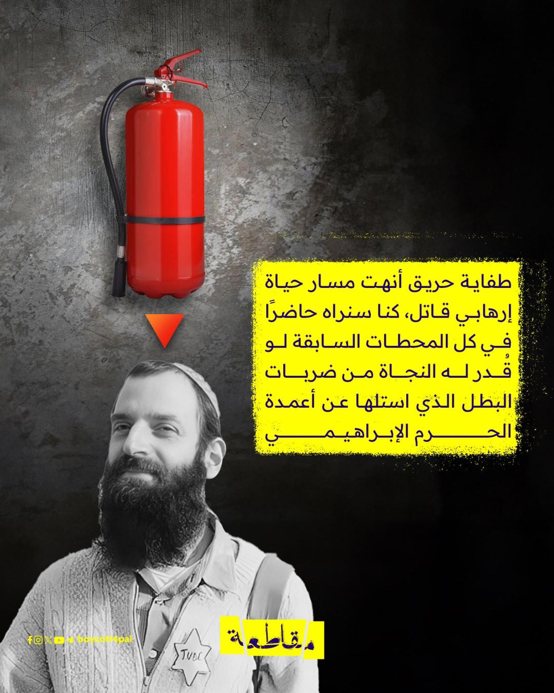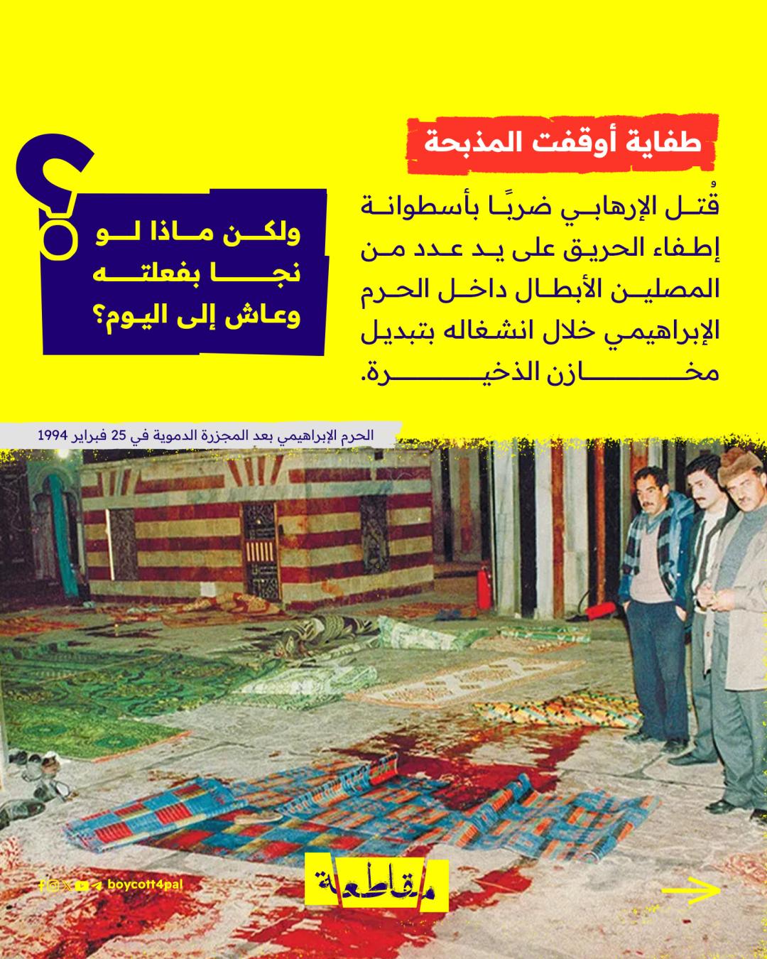 في مثل هذا اليوم، ارتكب ذلك الإرهابي مجزرته الدامية في صفوف المصلين بالحرم الإبراهيمي فجرًا، لكن اسطوانة إطفاء حريق استلها أحد المصلين الأبطال، وانهال بها عليه، كان كفيلة بوقف المذبحة، ومنعت نجاة المجرم بفعلته، وأنزلت به القصاص الفوري.