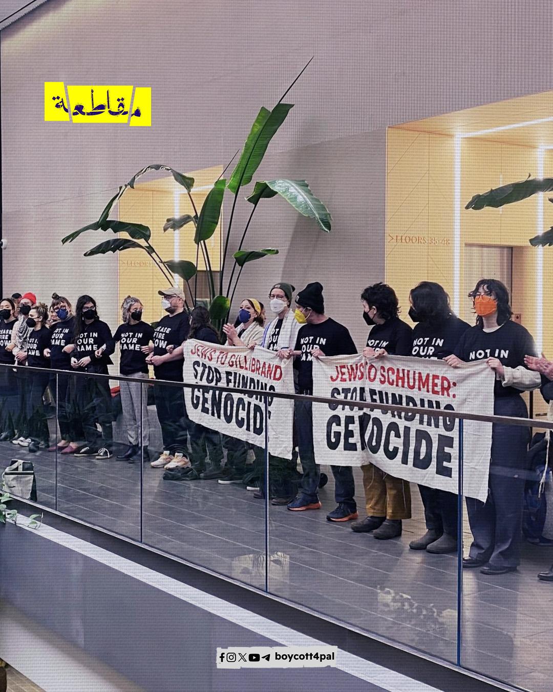 ألقت الشرطة القبض على أكثر من اثني عشر شخصًا خلال احتجاج سلمي داخل مبنى مانهاتن حيث توجد مكاتب أعضاء مجلس الشيوخ المؤيدين للاحتلال تشاك شومر وكيرستن جيليبراند.