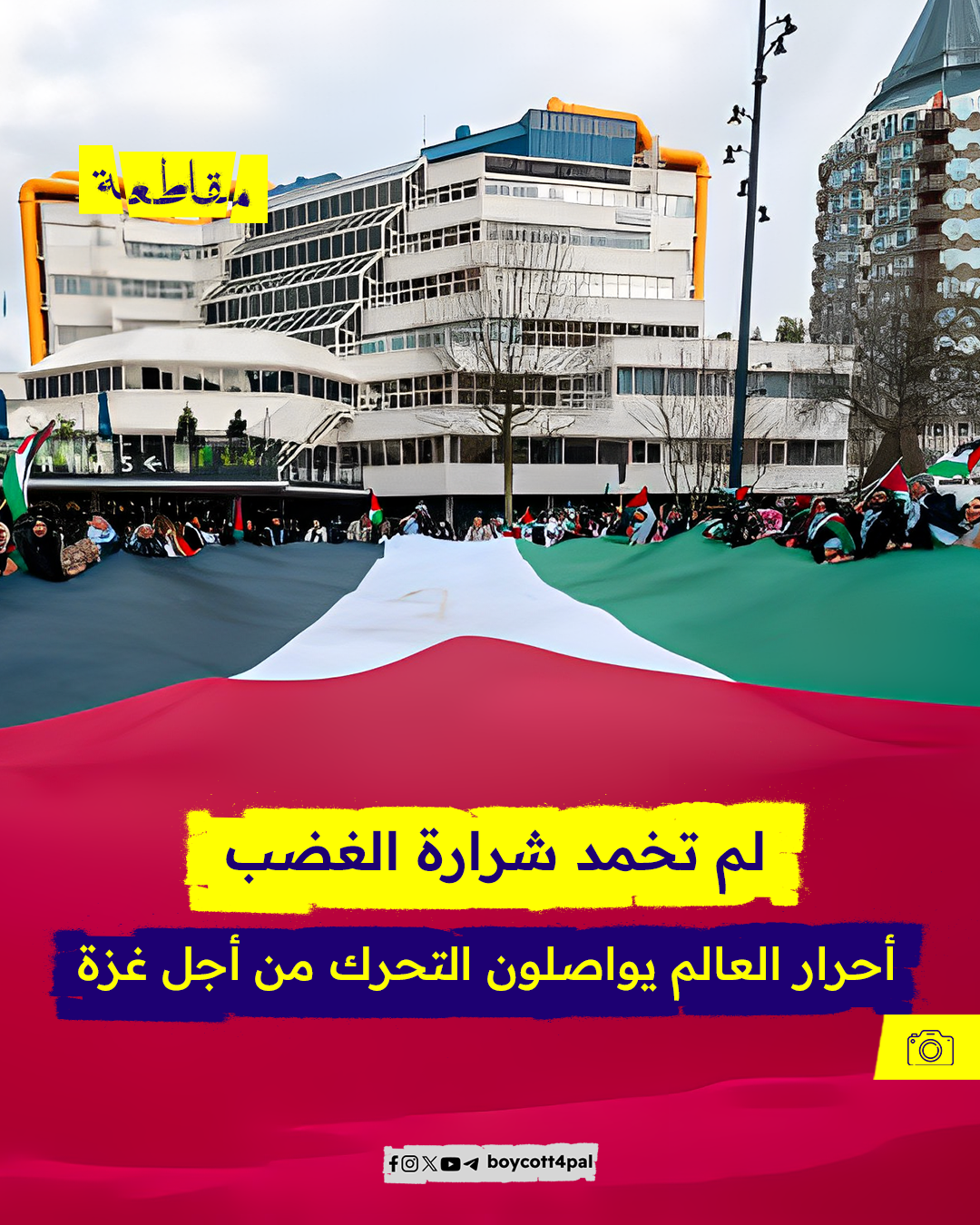 تواصل شعوب العالم حشدها من أجل القضية الفلسطينية وتُعلن رفضها للعدوان الإسرائيلي في قطاع غزة، وتُطالب حكوماتها بالضغط لوقف إطلاق النار والإبادة الجماعية المستمرة بحق الأهالي في القطاع، وسحب الاستثمارات وقطع العلاقات ووقف التسليح مع العدو الصهيوني.