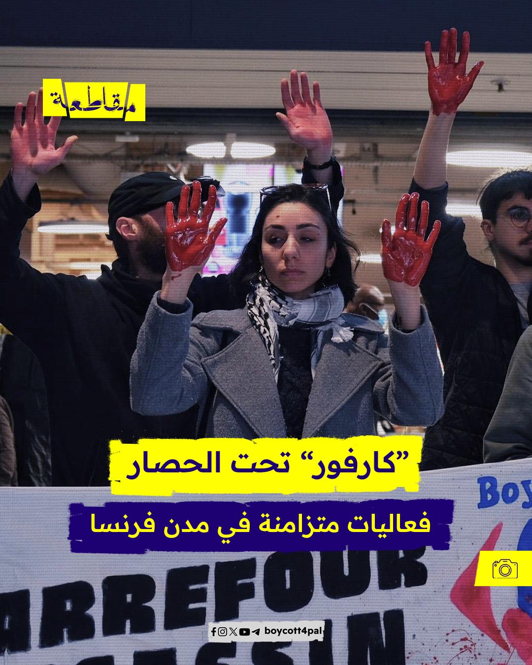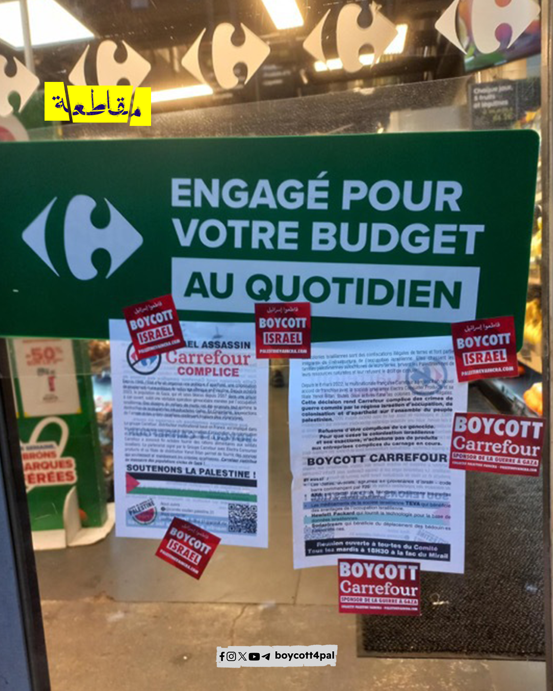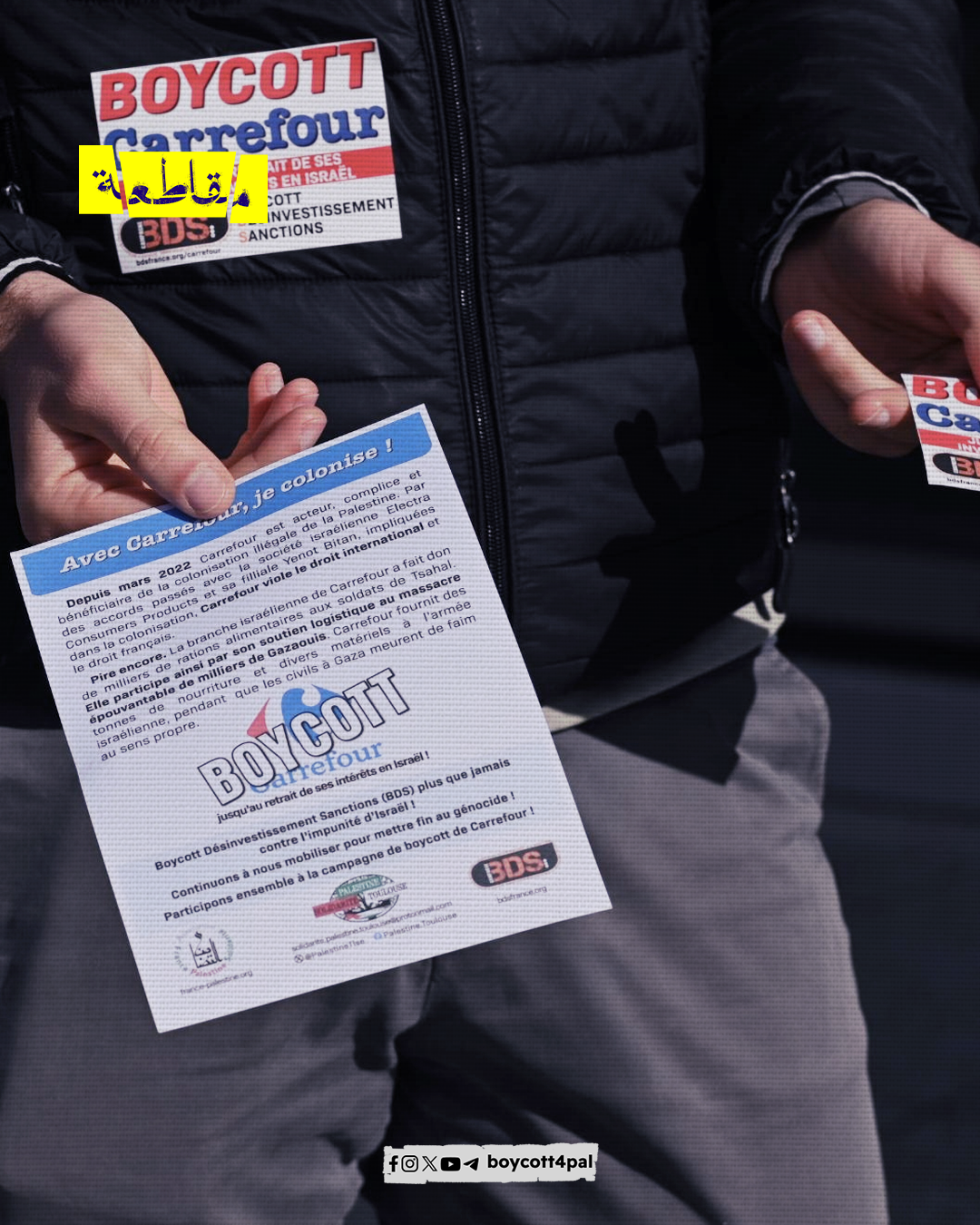 أطلقت حركة المقاطعة في فرنسا أمس السبت فعاليات يوم عمل ضد متجر الإبادة “كارفور” في عدة مدن فرنسية منها تولوز وليون وبروفينسي، ضمن حراك المقاطعة المتواصل ضد الشركة تنديدًا بدعمها للإبادة الجماعية في غزة.