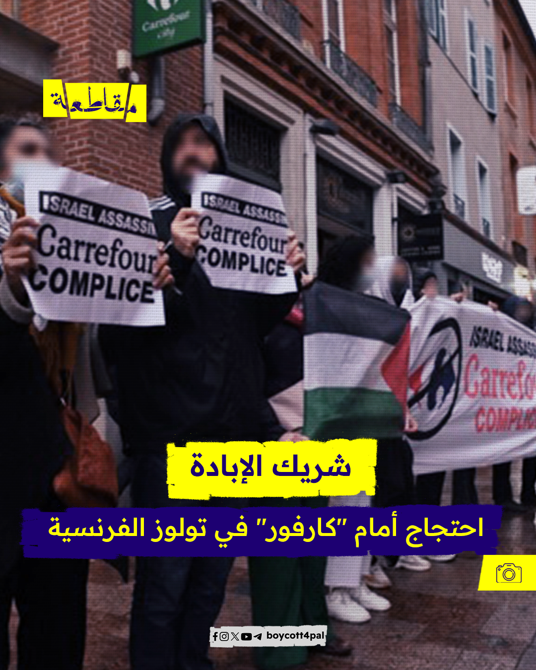 نظم أنصار فلسطين وقفة احتجاجية أمام متجر "كارفور" في مدينة تولوز الفرنسية لاستمرار دعمها للجيش الإسرائيلي الذي ينفذ إبادة جماعية في قطاع غزة منذ ما يُقارب 5 أشهر