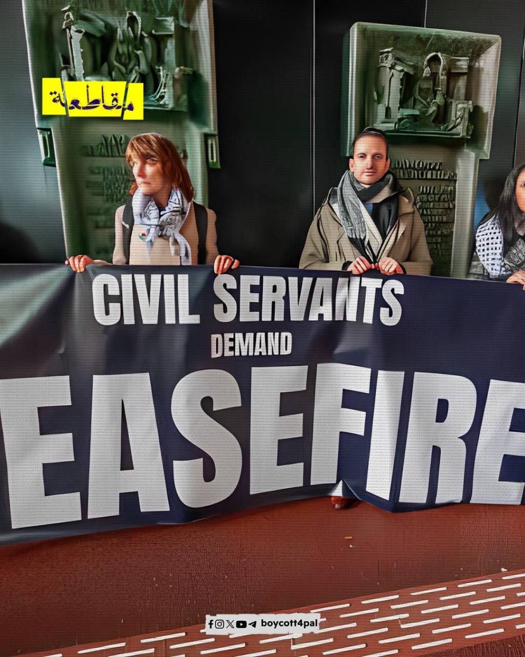 أقام العاملون الطبّيون والقضائيون احتجاجًا مؤيدًا للفلسطينيين في وقت الغداء عند مدخل وزارة الخارجية الهولندية للمطالبة بوقفٍ فوريّ للإبادة الجماعية في قطاع غزّة.