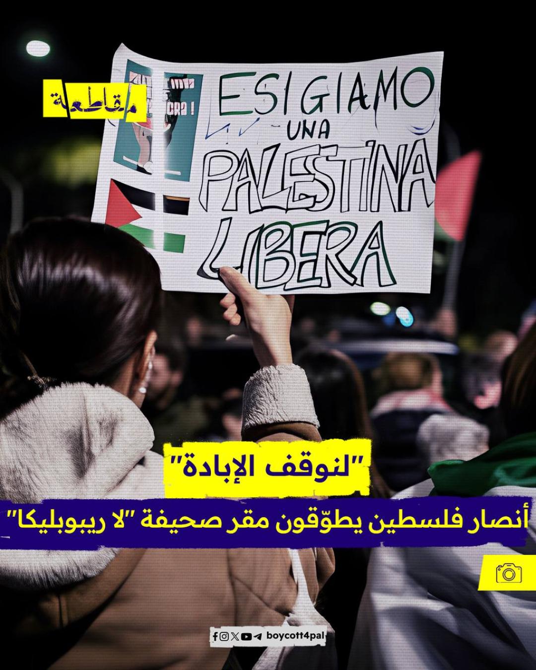 تجمّع المتظاهرون أمام مقر الصحيفة في روما، لانتقاد تعاملها مع القضية الفلسطينية، ولمطالبتها بإظهار التضامن مع صحفيي غزة الذين قُتلوا في غارات الجيش الإسرائيلي.