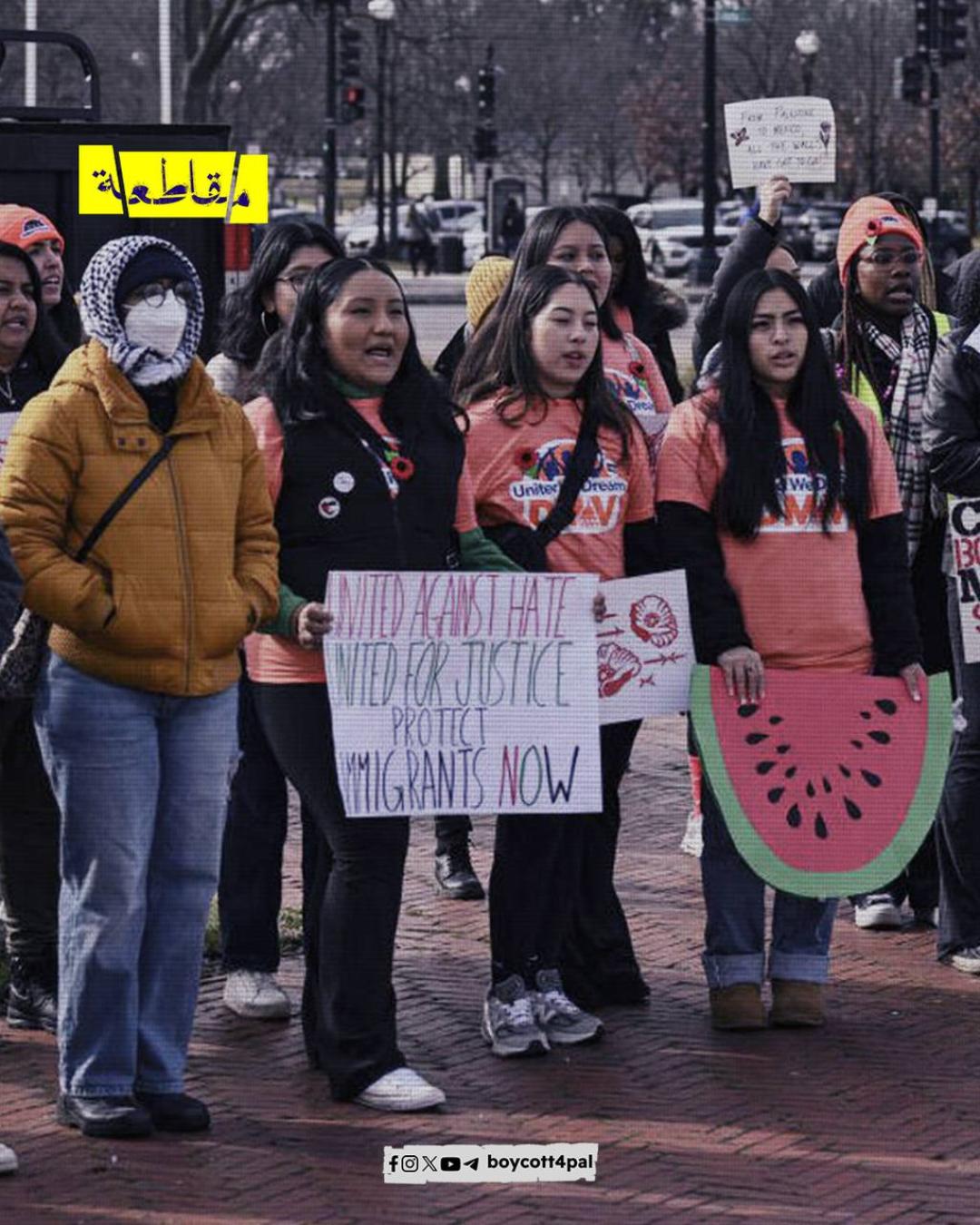 🟡 أعربت المجموعات المتظاهرة عن استيائها من الجرائم الإسرائيلية، بالإضافة إلى سياسات الولايات المتحدة الداعمة للإبادة ضد قطاع غزة.