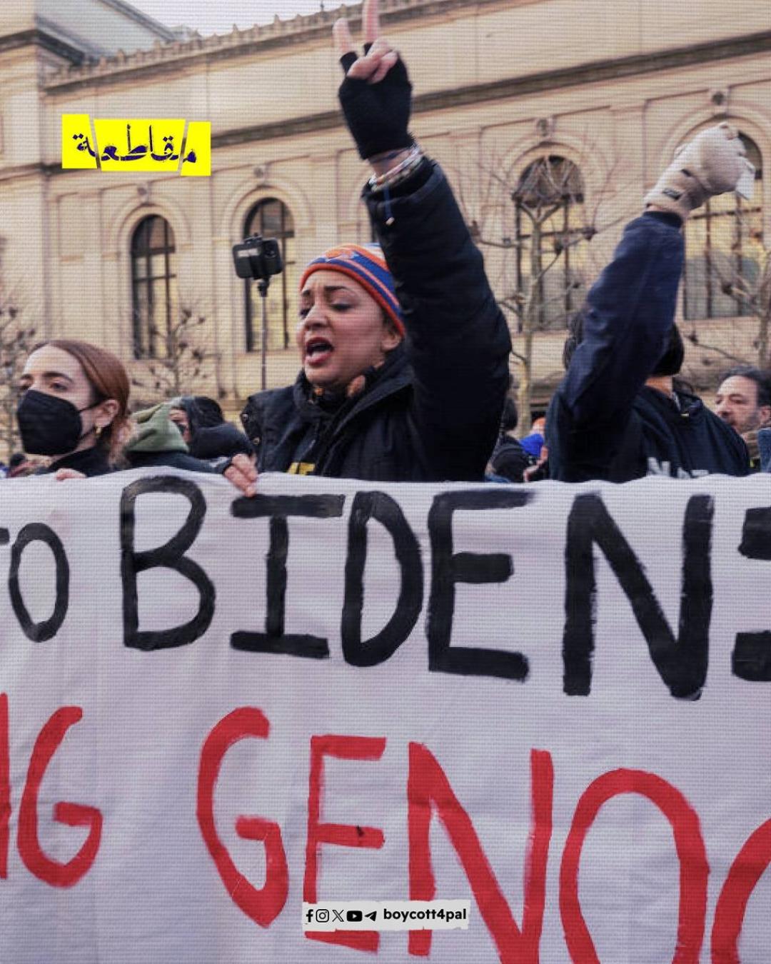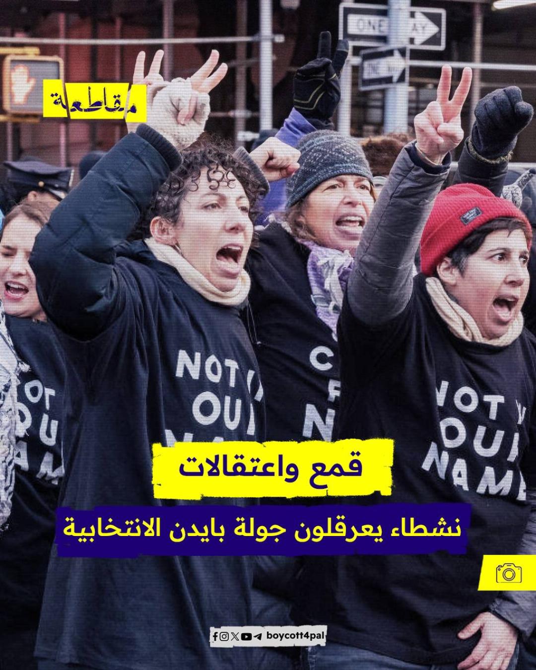 حاصر المئات من نشطاء “الصوت اليهودي” موكب المجرم جو بايدن خلال محاولته الوصول إلى فعالية انتخابية له في مدينة نيويورك حيث يلاحقه المتضامنون باستمرار لمطالبته بفرض وقف إطلاق النار بغزة وتدخلت الشرطة على الفور لقمع الفعالية واعتقال 2 من المشاركين.