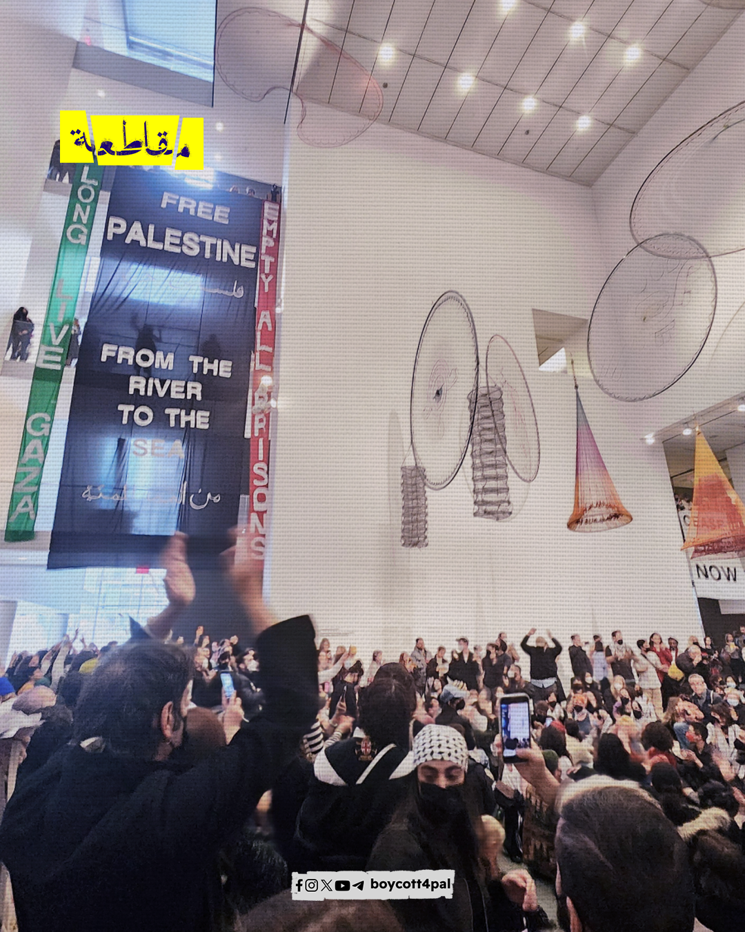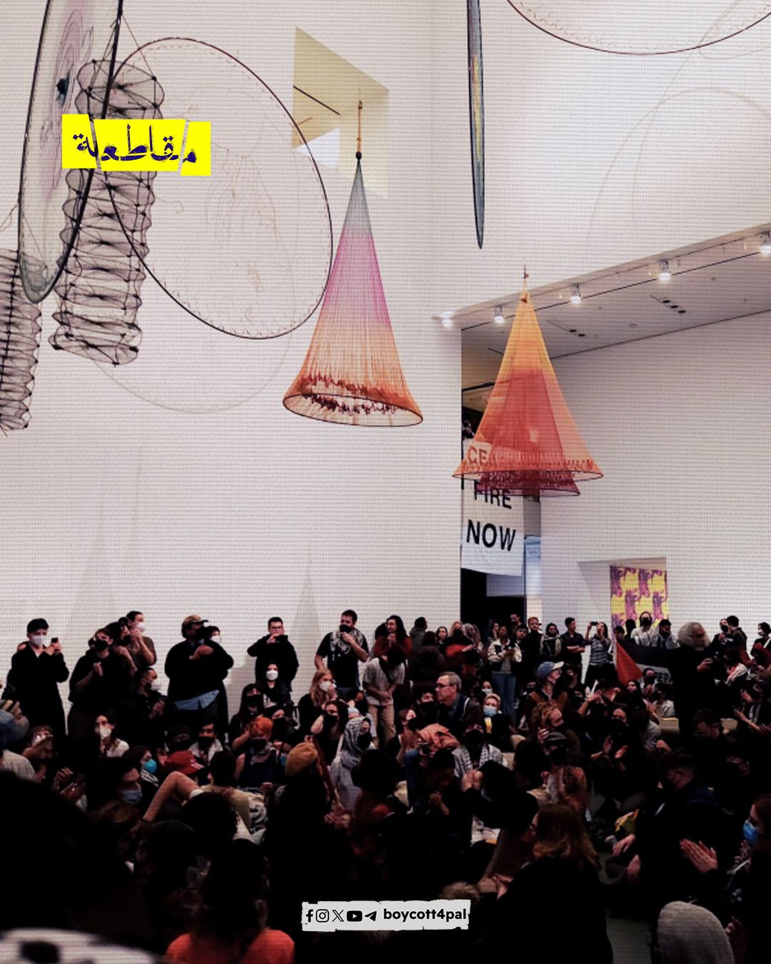 المتظاهرون من مدينة نيويورك طالبوا المتحف باتخاذ موقف ضد الإبادة الجماعية والفصل العنصري بدءًا من الإزالة الفورية لأعضاء مجلس الإدارة والمانحين الذين لهم علاقات واستثمارات مع الاحتلال الإسرائيلي.