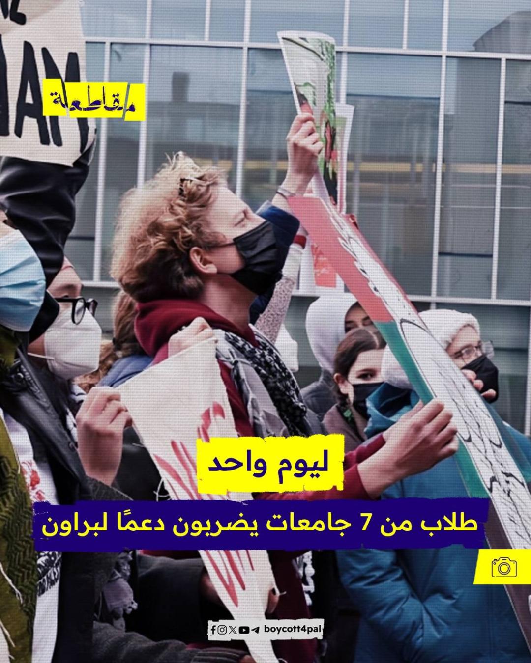 شارك طلاب متضامنون مع فلسطين من بومونا، وشيكاغو، وجامعة إنديانا، وييل، وهارفارد، وماونت هوليوك، زملاءهم في جامعة براون المضربين عن الطعام منذ 8 أيام وحتى الاستجابة لمطالبهم بقطع الاستثمارات والعلاقات مع الاحتلال الإسرائيلي.