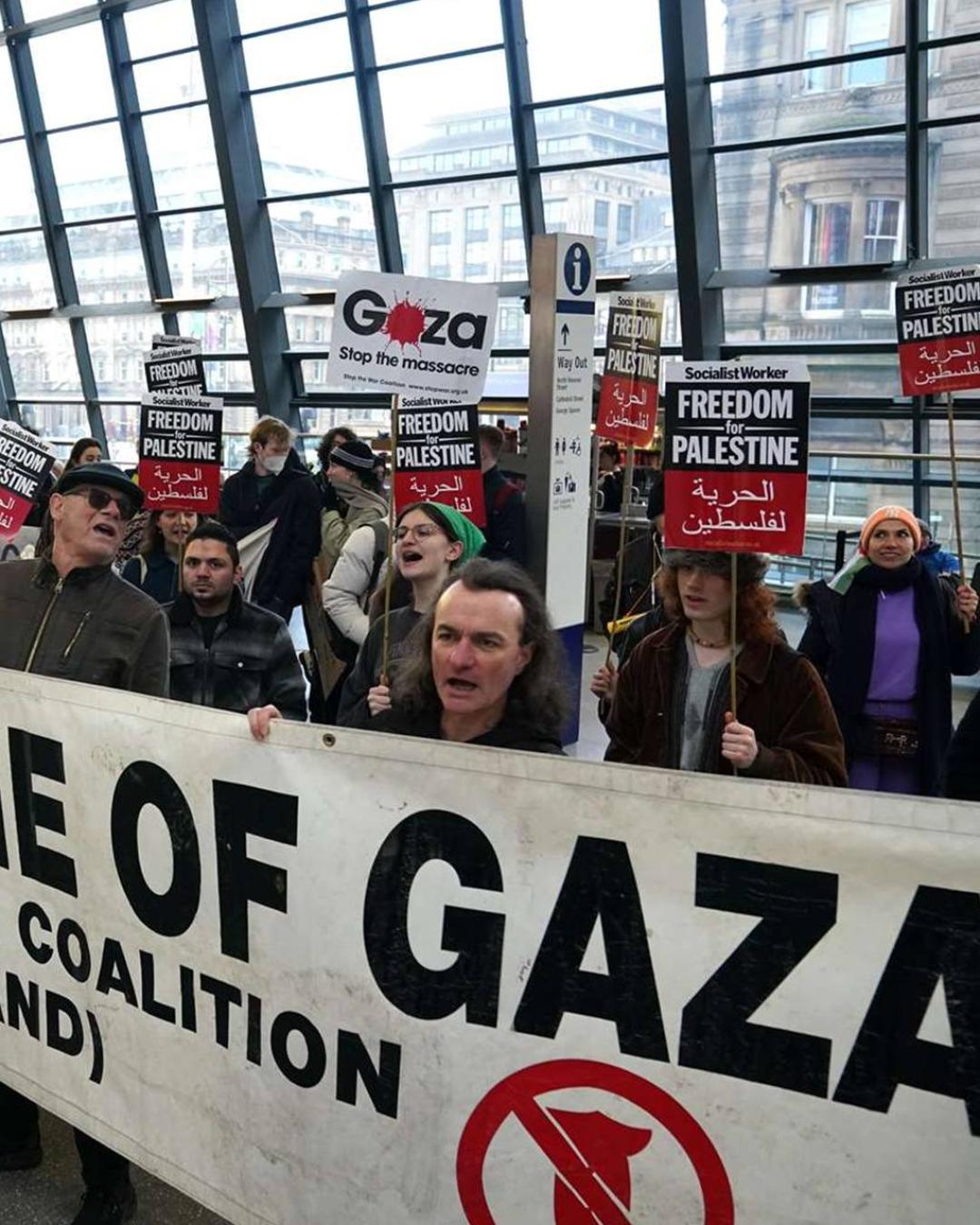 وقد نظم هذا التحرك تحالف غلاسكو أوقفوا الحرب، والذي نشر على مواقع التواصل الاجتماعي الخاصة به: “كل عمل جماعي، كبير أو صغير، يبعث برسالة إلى أولئك الذين يعانون في غزة بأننا معهم ويضغط على حكومتنا”.