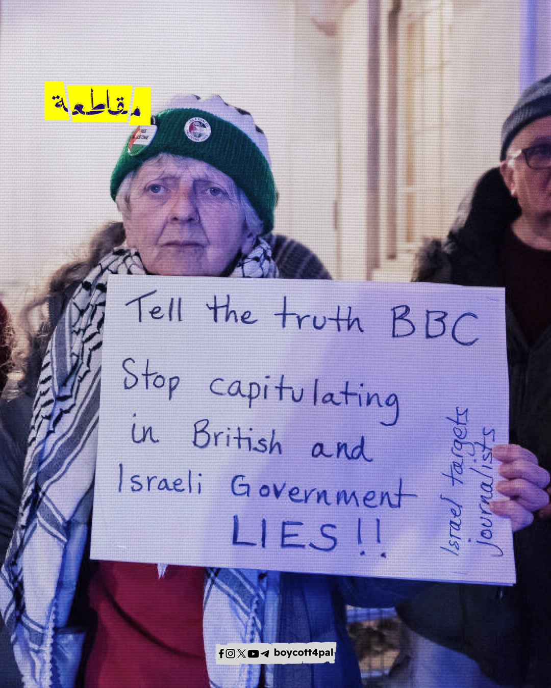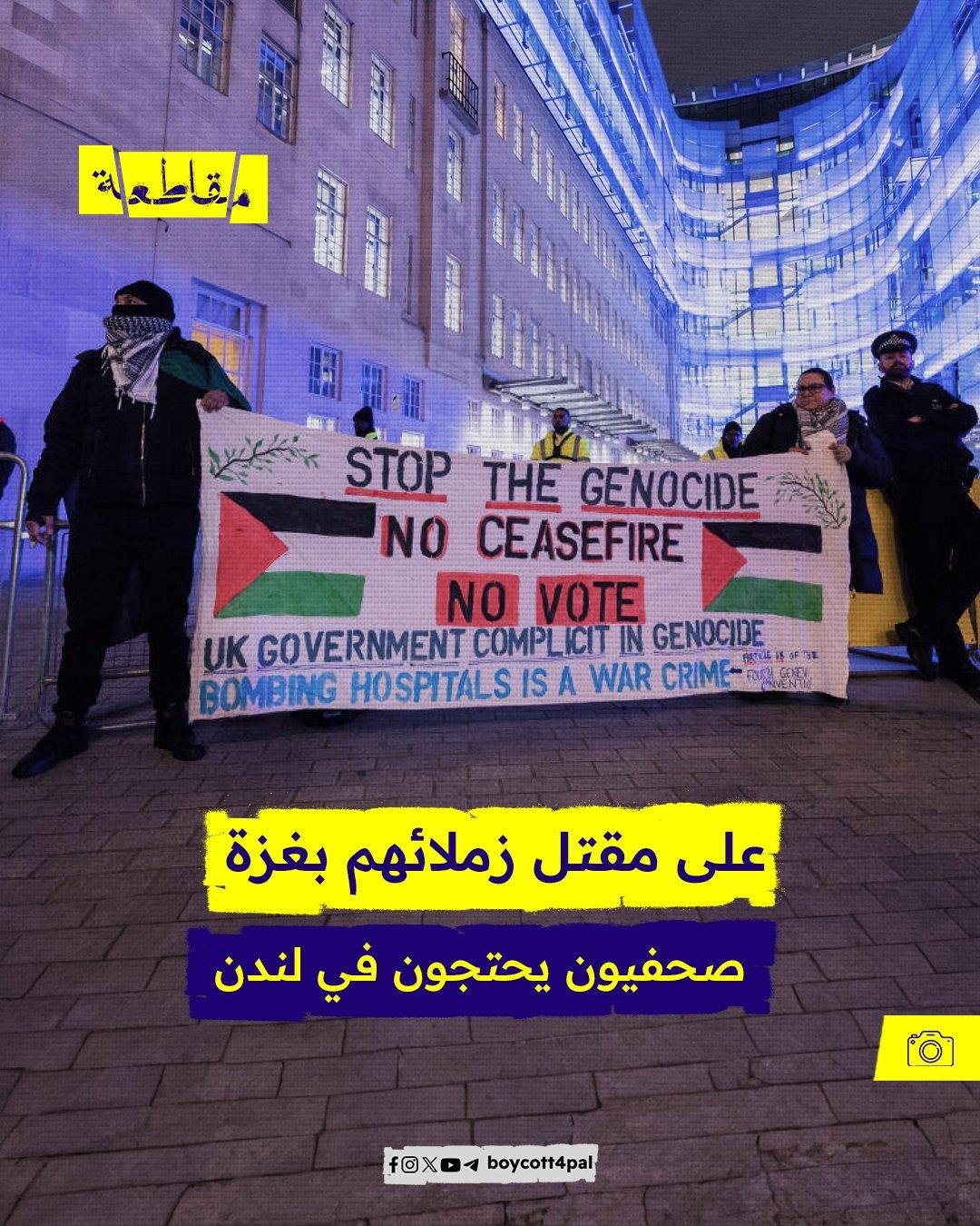 تجمع الصحفيون والعاملون في مجال الإعلام خارج دار إذاعة بي بي سي في لندن للاحتجاج على مقتل زملائهم في قطاع غزة.