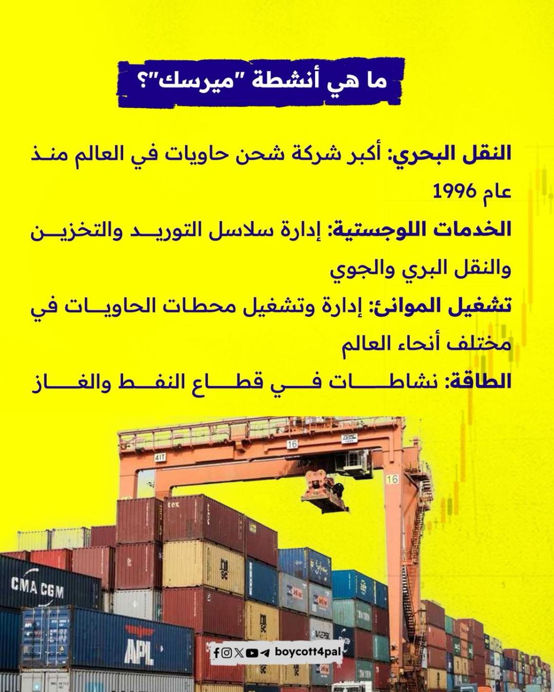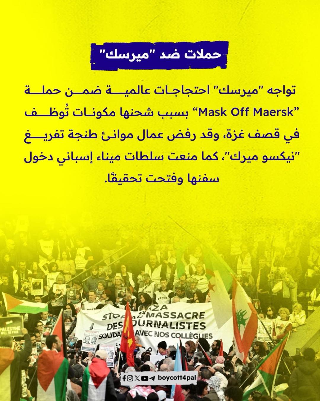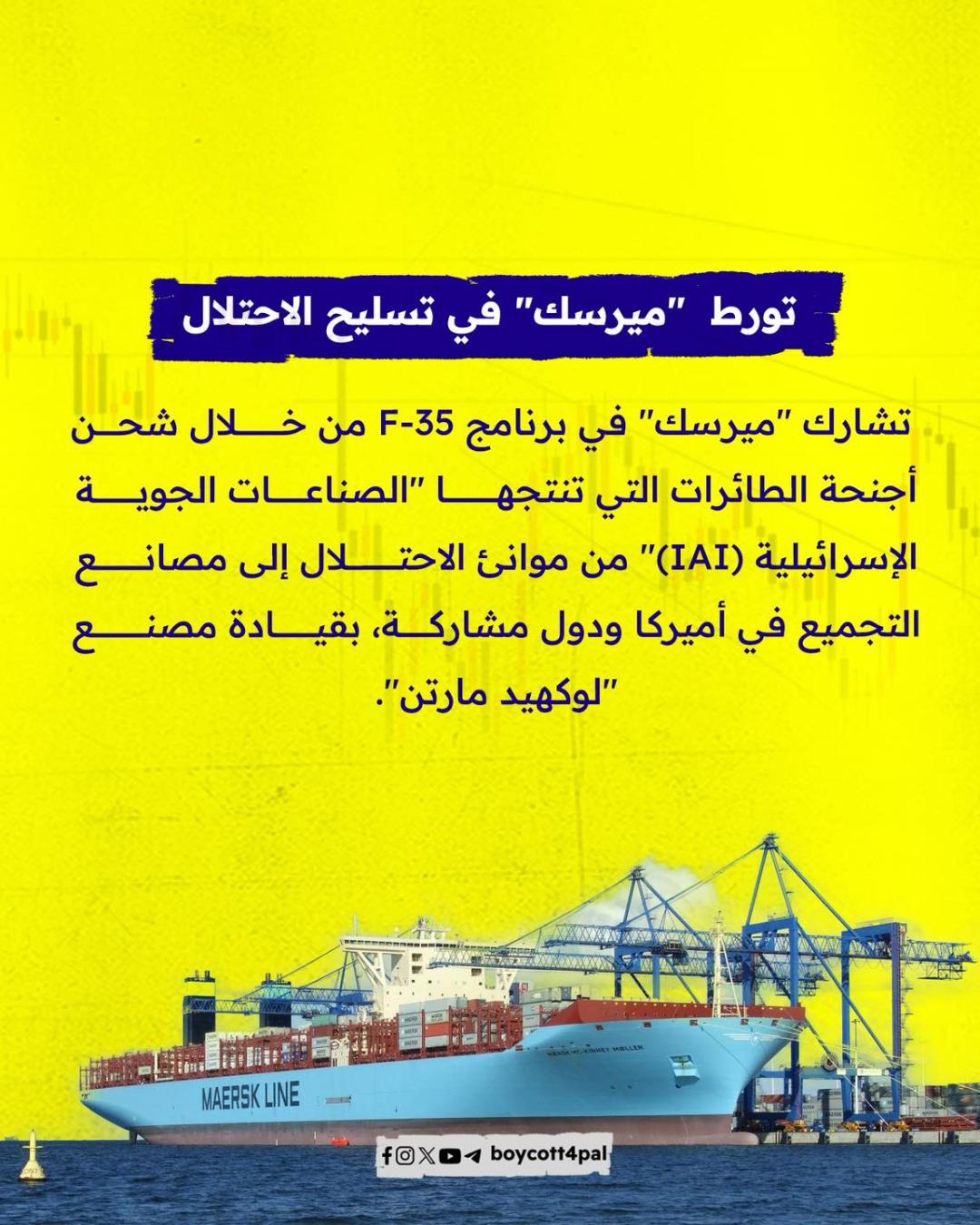 من أكبر شركة شحن في العالم إلى شريان لدعم آلة الحرب الإسرائيلي. ميرسك تواجه موجة غضب عالمي بعد الكشف عن دورها في نقل مكونات مقاتلات F-35 المستخدمة في قصف غزة. حملات المقاطعة تتصاعد، والموانئ تُغلق أمام سفنها. هل حان وقت محاسبة الشركات على أرباحها الملطخة بدماء الأبرياء؟