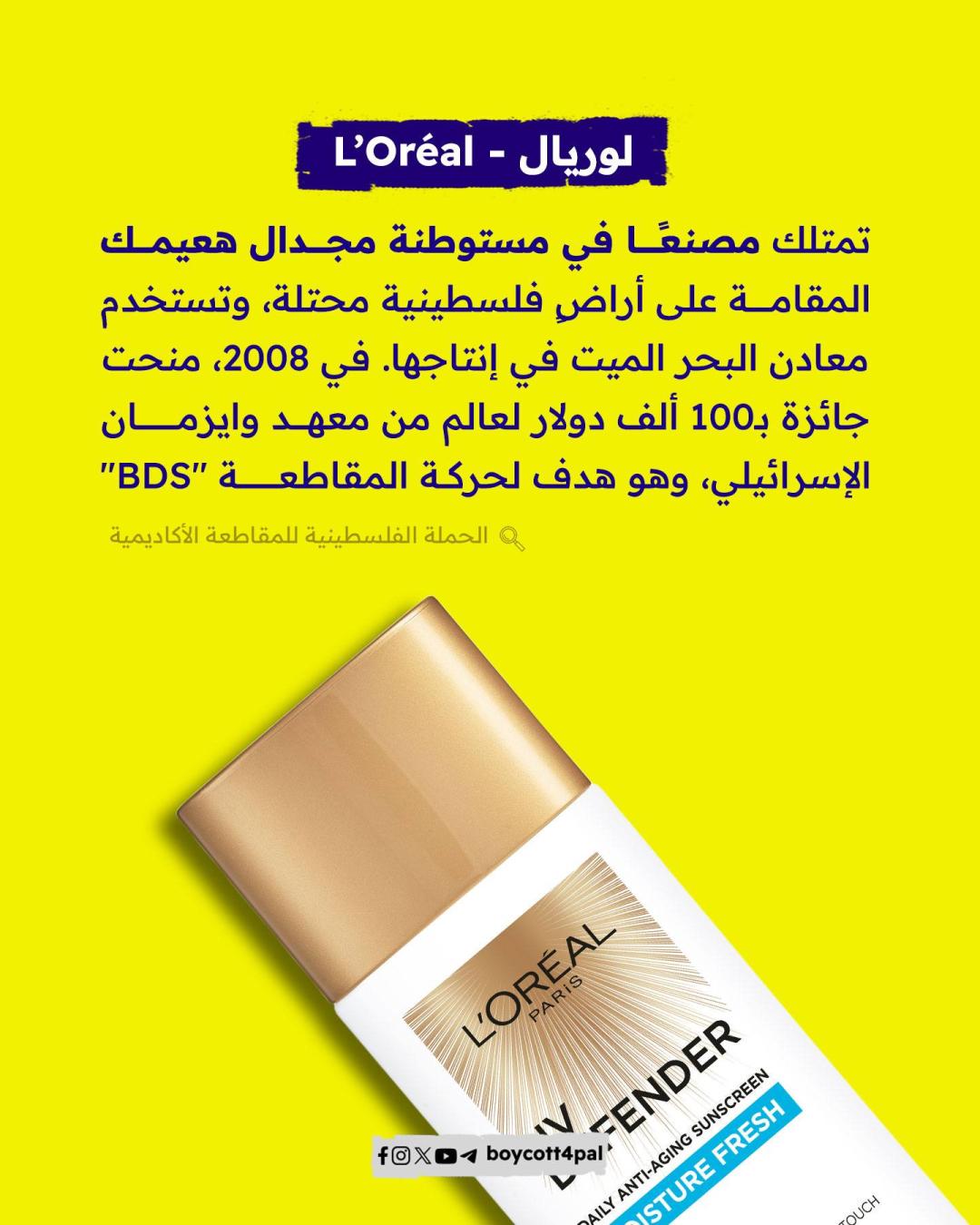 مع اقتراب الصيف، تقبل الفتيات على شراء منتجات الوقاية من الشمس. ولكن، ليست كل المنتجات تستحق أن نمول شركاتها المنتجة باستهلاكن، وذلك لأنها داعمة لاقتصاد الاحتلال الذي يرتكب جرائم الإبادة بحق أهلنا في فلسطين. ولأنك ملتزمة بدعم القضية، شاركينا ببدائل وقاية بريئة من دعم الاحتلال.