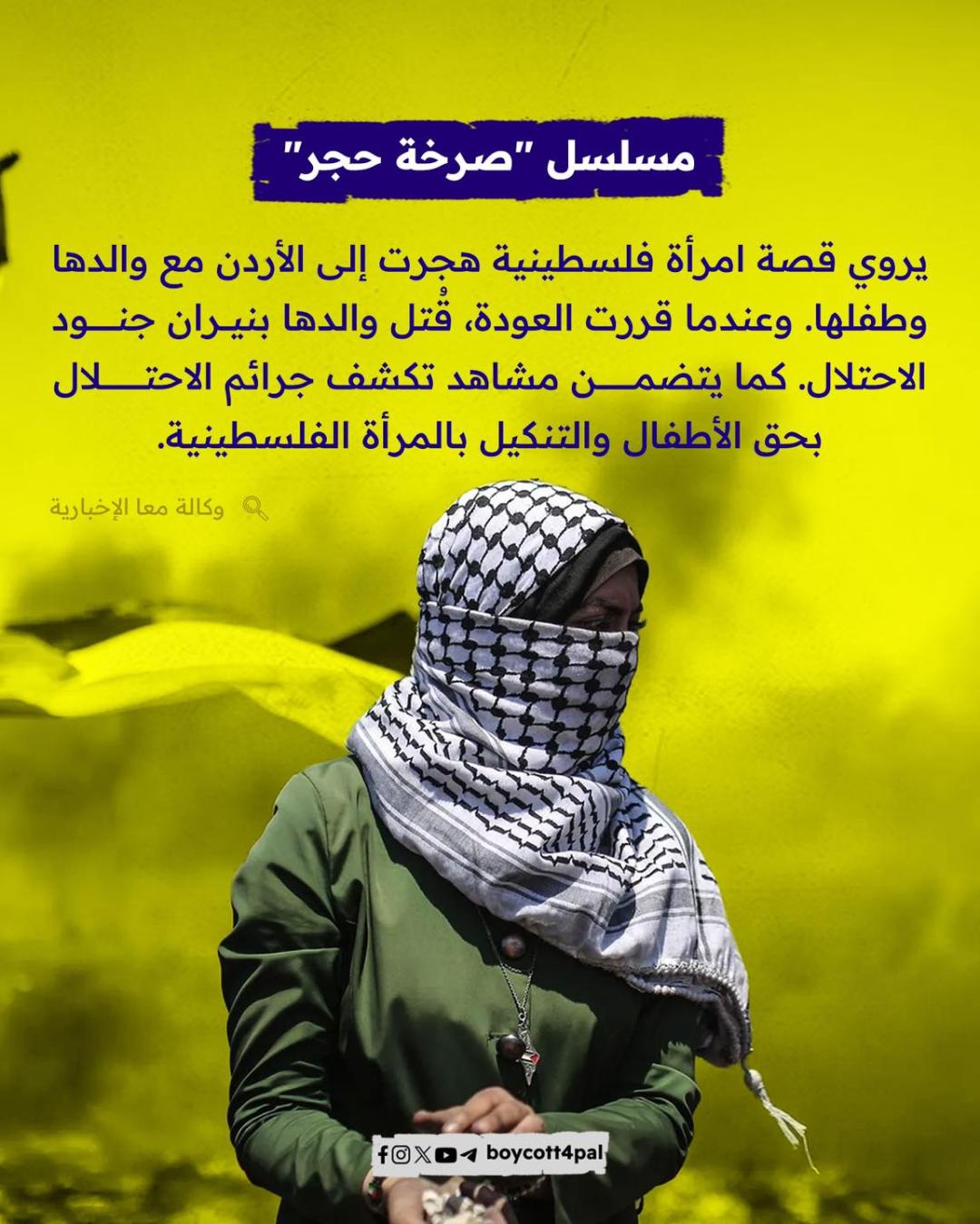 وحين تضع المسلسلات والسينما جرائم الاحتلال في الواجهة، فإنها تتحول من أعمال فنية إلى سلاحٍ ثقافي يعيد سرد القضية. هذه الأعمال ليست ترفيهًا عابرًا، بل صوتٌ يقاوم، ورسالةٌ تمتد عبر الأجيال، لتؤكد أن القضية الفلسطينية لا تموت طالما أن الفن ينبض بها.