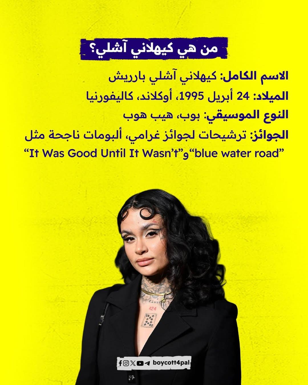 آشلي كيهلاني، بصوتها ومواقفها، تثبت أن الفن لا ينفصل عن القضايا الإنسانية، ودعمها لفلسطين هو أكبر دليل.