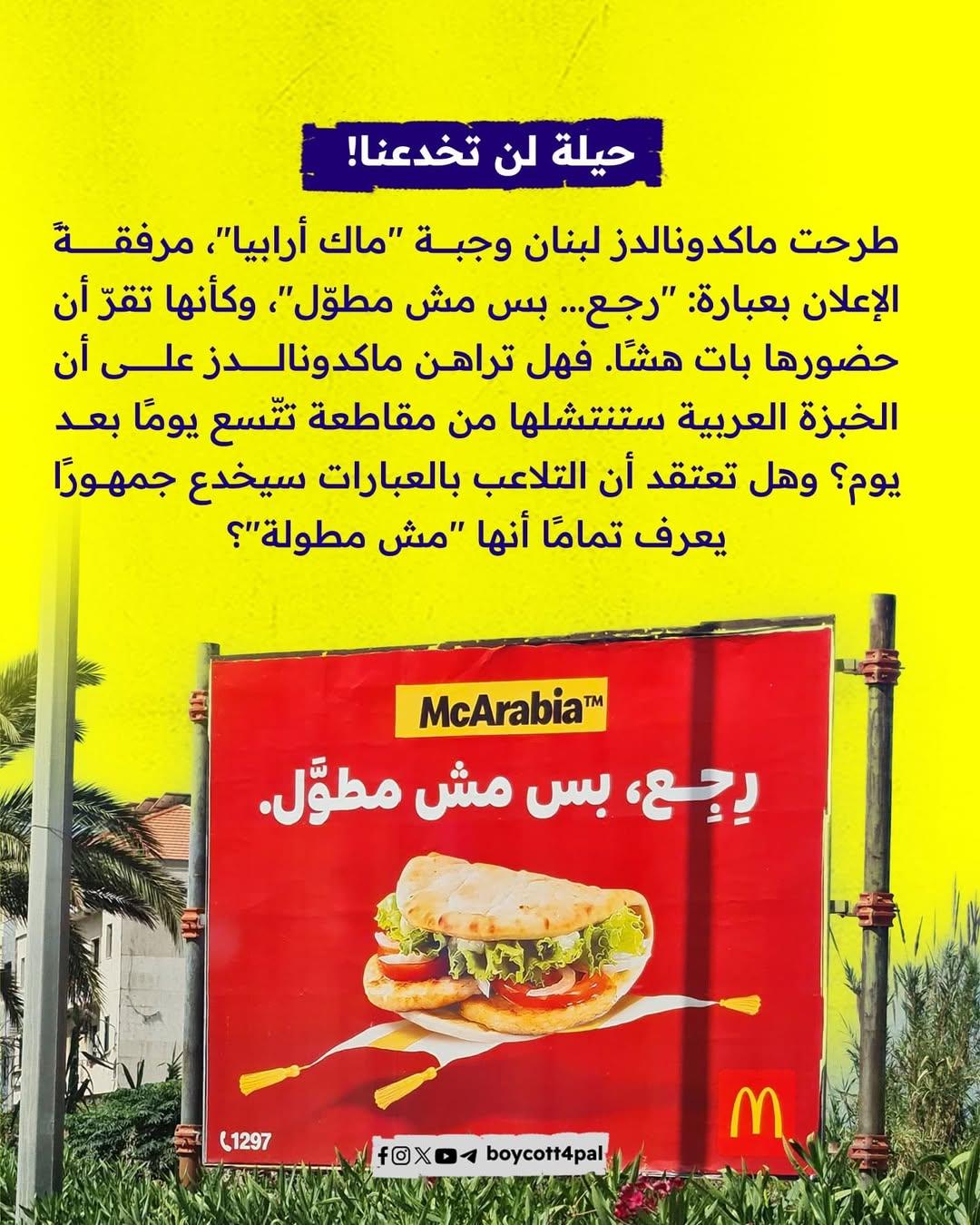 بين وجبة موسمية وعبارات ترويجية ملتفة، تحاول ماكدونالدز لبنان أن تنقذ ما يمكن إنقاذه، متناسية أن الجمهور لم ينسَ تورّطها في دعم الاحتلال. فهل تكفي "ماك أرابيا" لتلميع الصورة؟ وما الذي تكشفه الأرقام