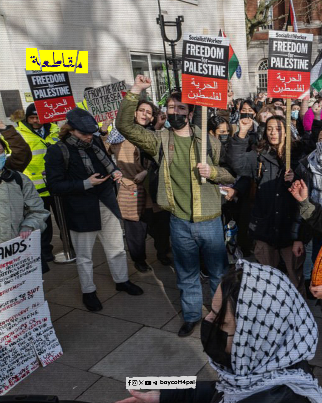 الطلاب المشاركون في المظاهرة المؤيدة لفلسطين في لندن، طالبوا بإنهاء العلاقات الأكاديمية التي تربط جامعاتهم مع المؤسسات الإسرائيلية، ووقف كافة أشكال التعاون الثنائي مع “إسرائيل” والتي تجعل منهم شركاء في الإبادة الجماعية الجارية في قطاع غزة.