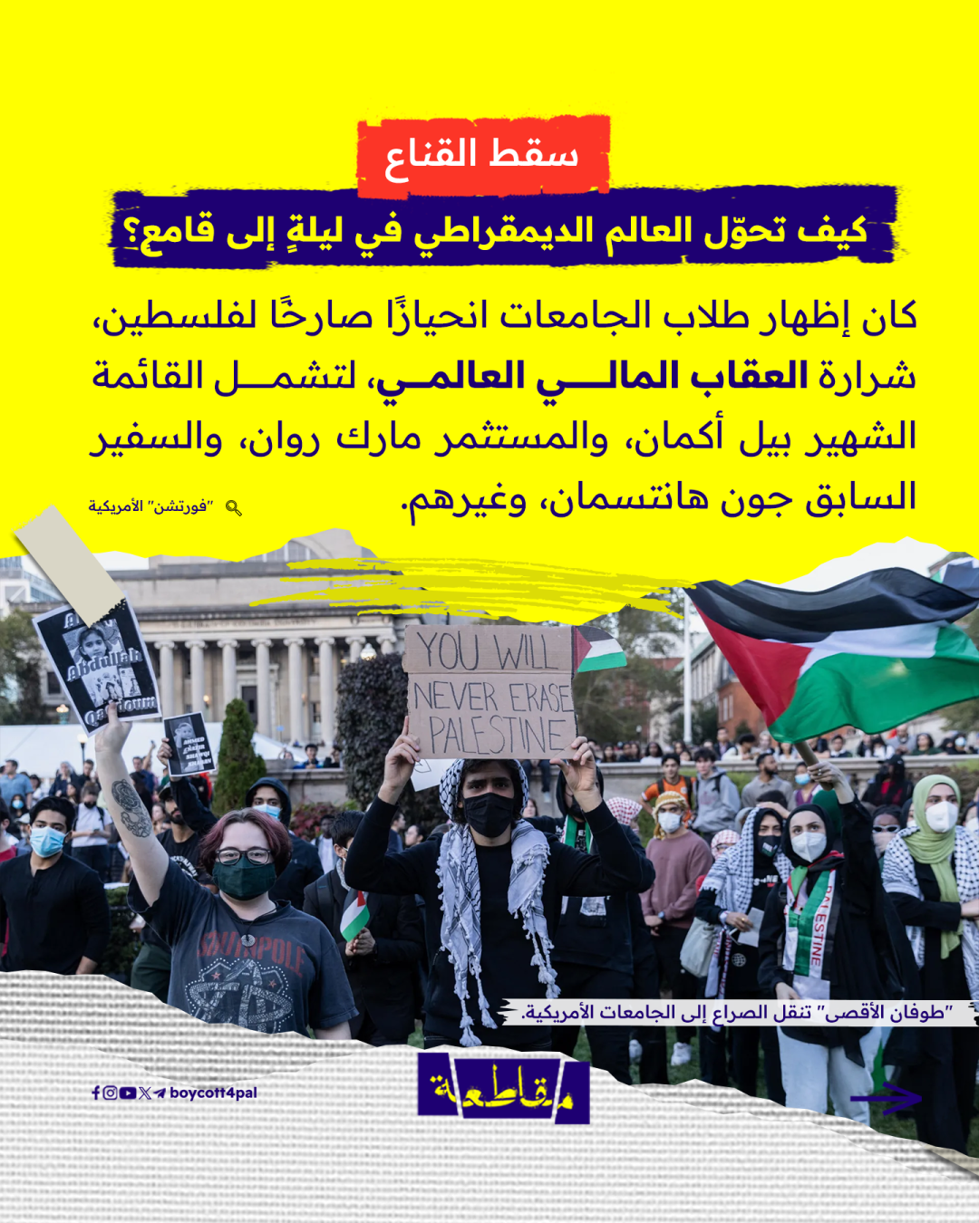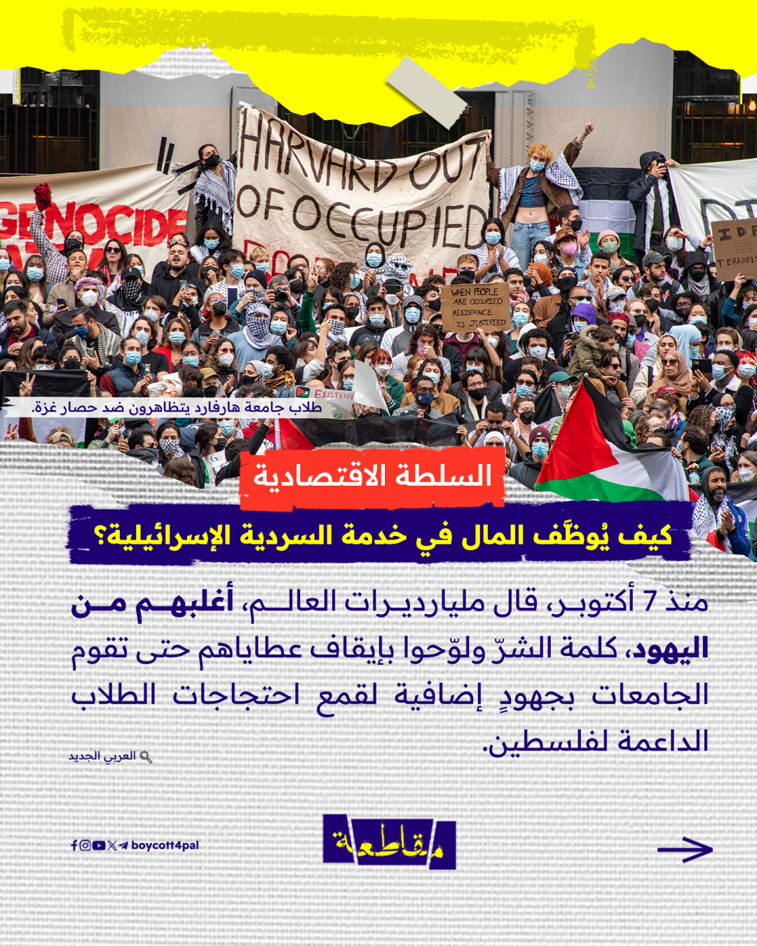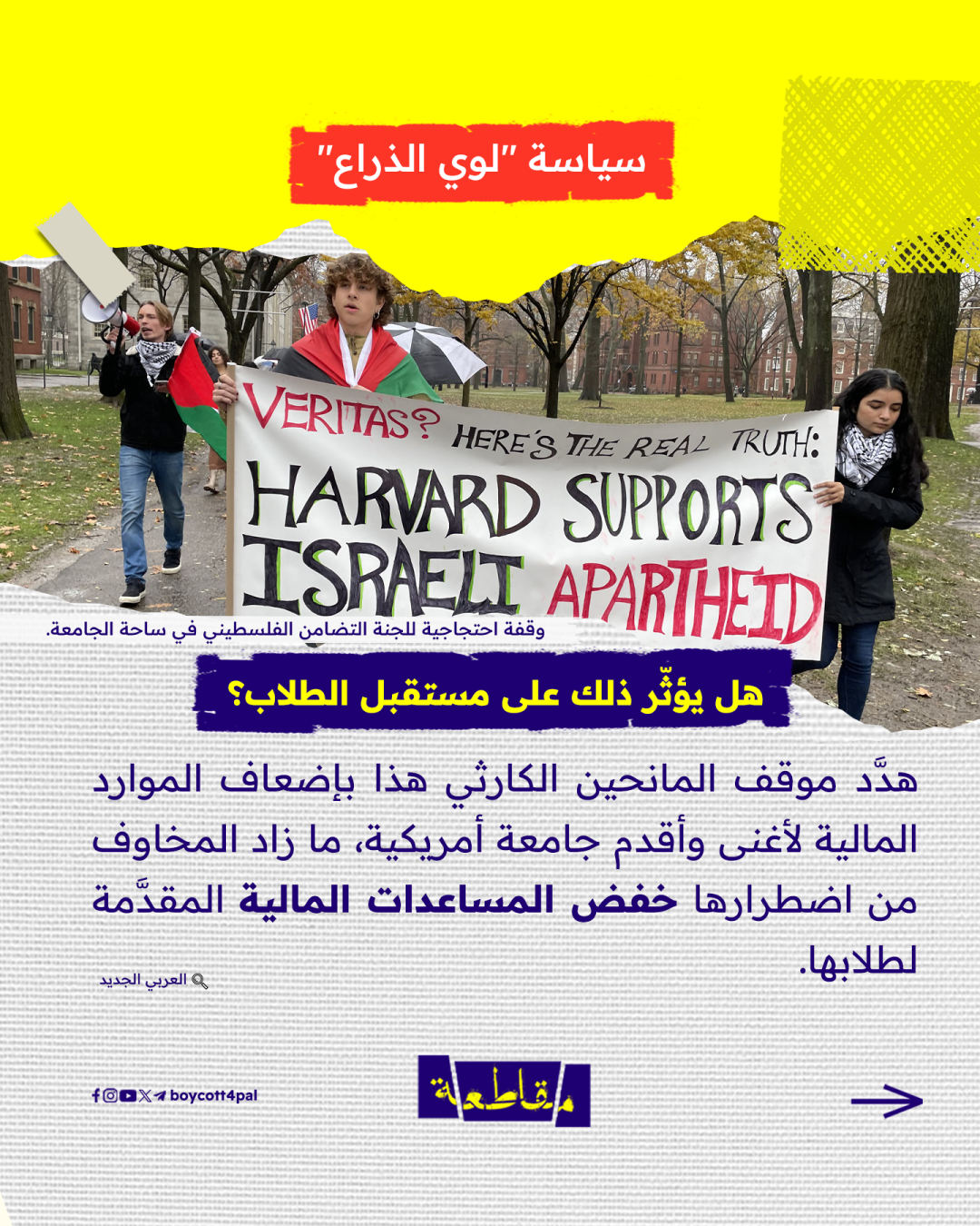 كشّر أثرياء العالم "الديمقراطي" عن أنيابهم بوجه الطلاب المناصرين لفلسطين داخل الجامعات المدعومة ماليًا من قبلهم. فكان قطع التمويل وحظر التبرعات بملايين الدولارات الوسيلة للتعبير عن غضبهم من الحراك الجامعي المطالب بوقف الإبادة في قطاع غزة، والمستمر منذ 4 أشهر على التوالي.