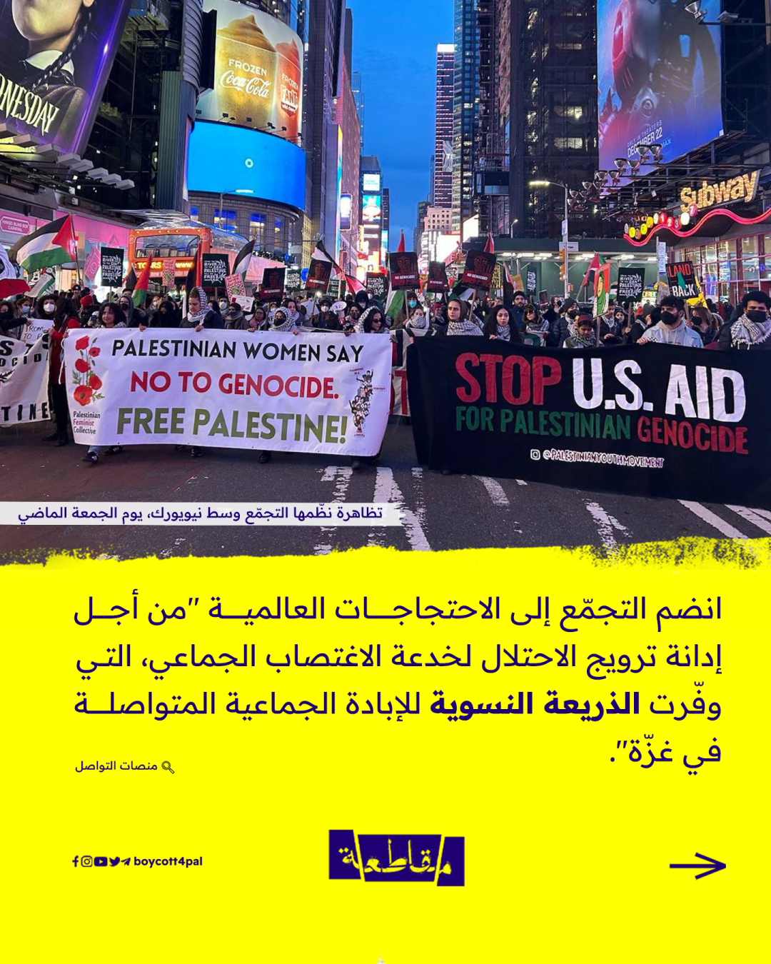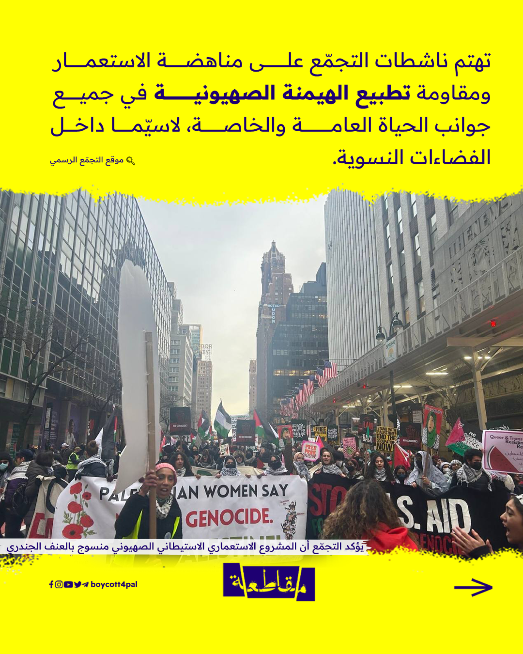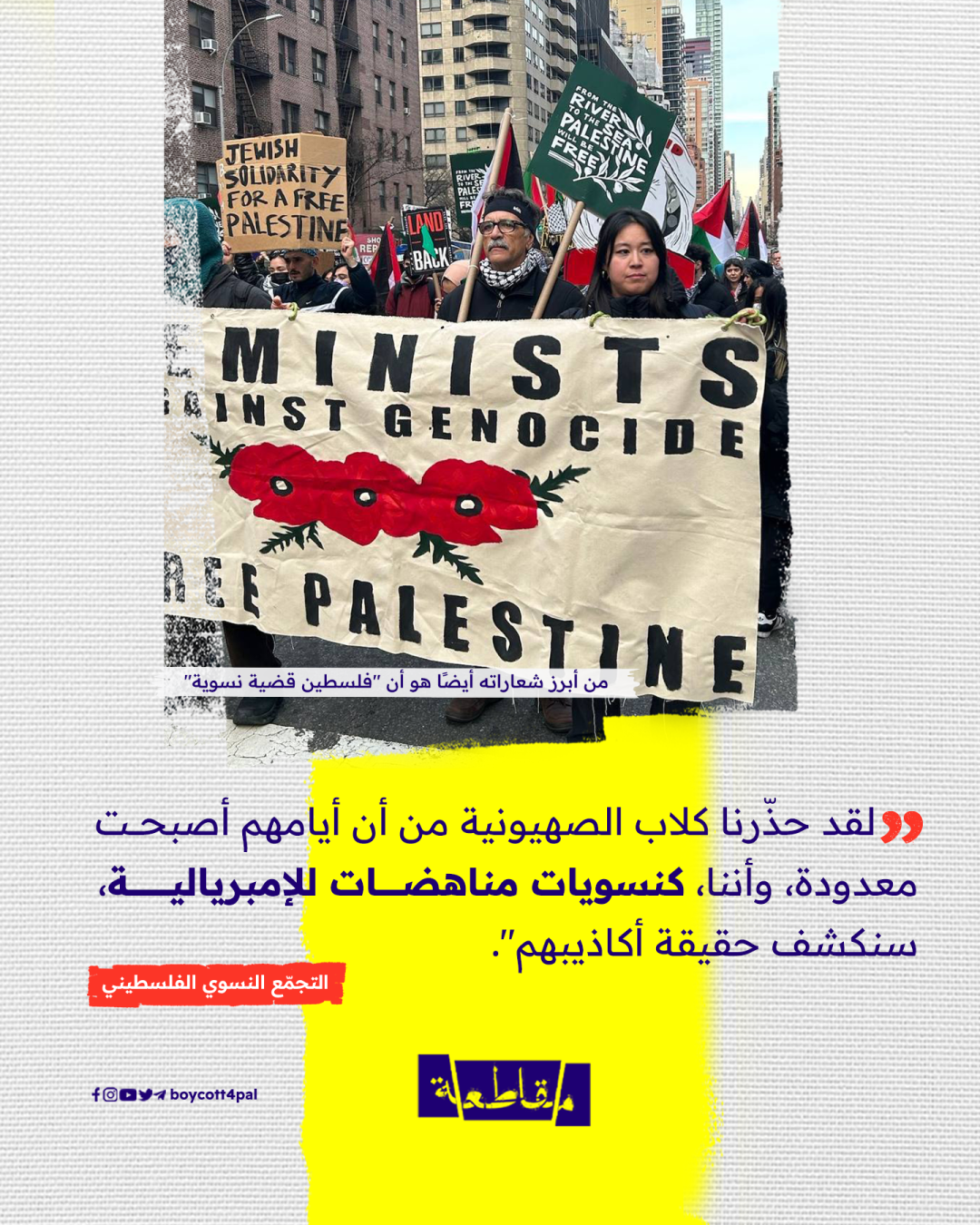 انضم التجمّع النسوي الفلسطيني، إلى يوم العمل العالمي من أجل فلسطين، خلال الأسبوع الماضي، وحشدت ناشطاته لاحتجاجٍ في نيويورك، كان من بين الأكبر من حيث المشاركة والتفاعل. تعرّفوا على التجمّع وعمله من خلال هذا المنشور.