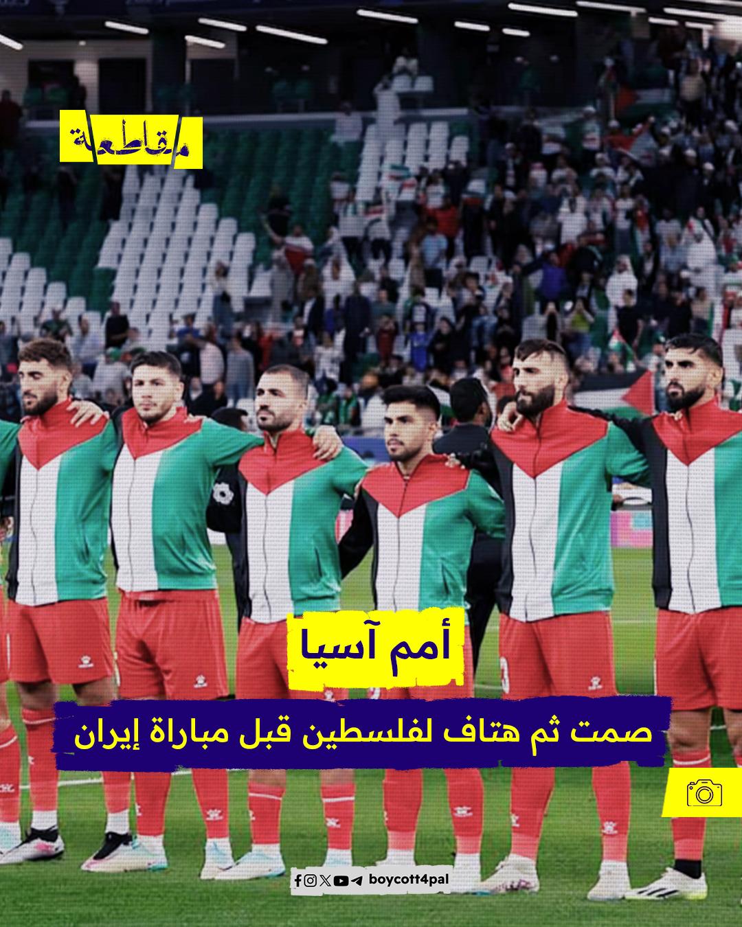 شهدت مباراة إيران وفلسطين، ضمن منافسات الجولة الأولى بالمجموعة الثالثة، وقوف اللاعبين دقيقة صمت قبل أن يتم سماع الهتافات المؤيدة لفلسطين من جانب الجماهير. وفي وقت سابق اصطف اللاعبون الفلسطينيون في صف واحد ممسكين بأذرع بعضهم البعض وقاموا بتأدية النشيد الوطني مع جماهيرهم.