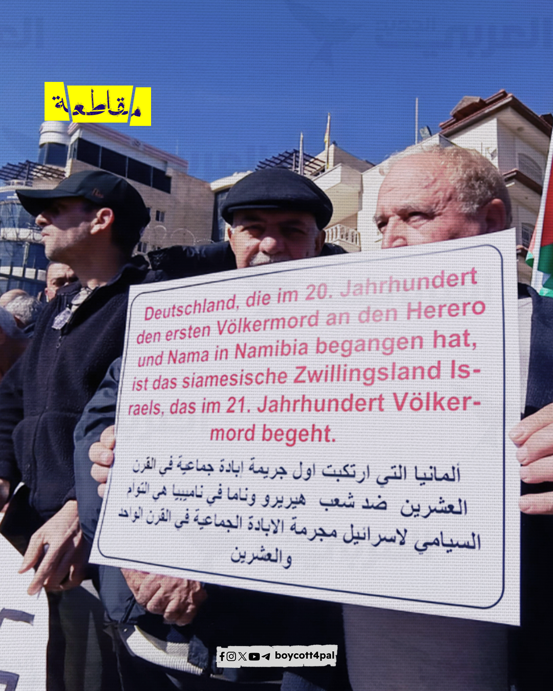 طالبت القوى والفصائل الفلسطينية والاتحادات والنقابات والمؤسسات الأهلية، ألمانيا، بوقف العمل باتفاقيات التبادل التجاري مع دولة الاحتلال، ووقف تزويدها بالأسلحة التي يقتل بها الشعب الفلسطيني يومياً.
