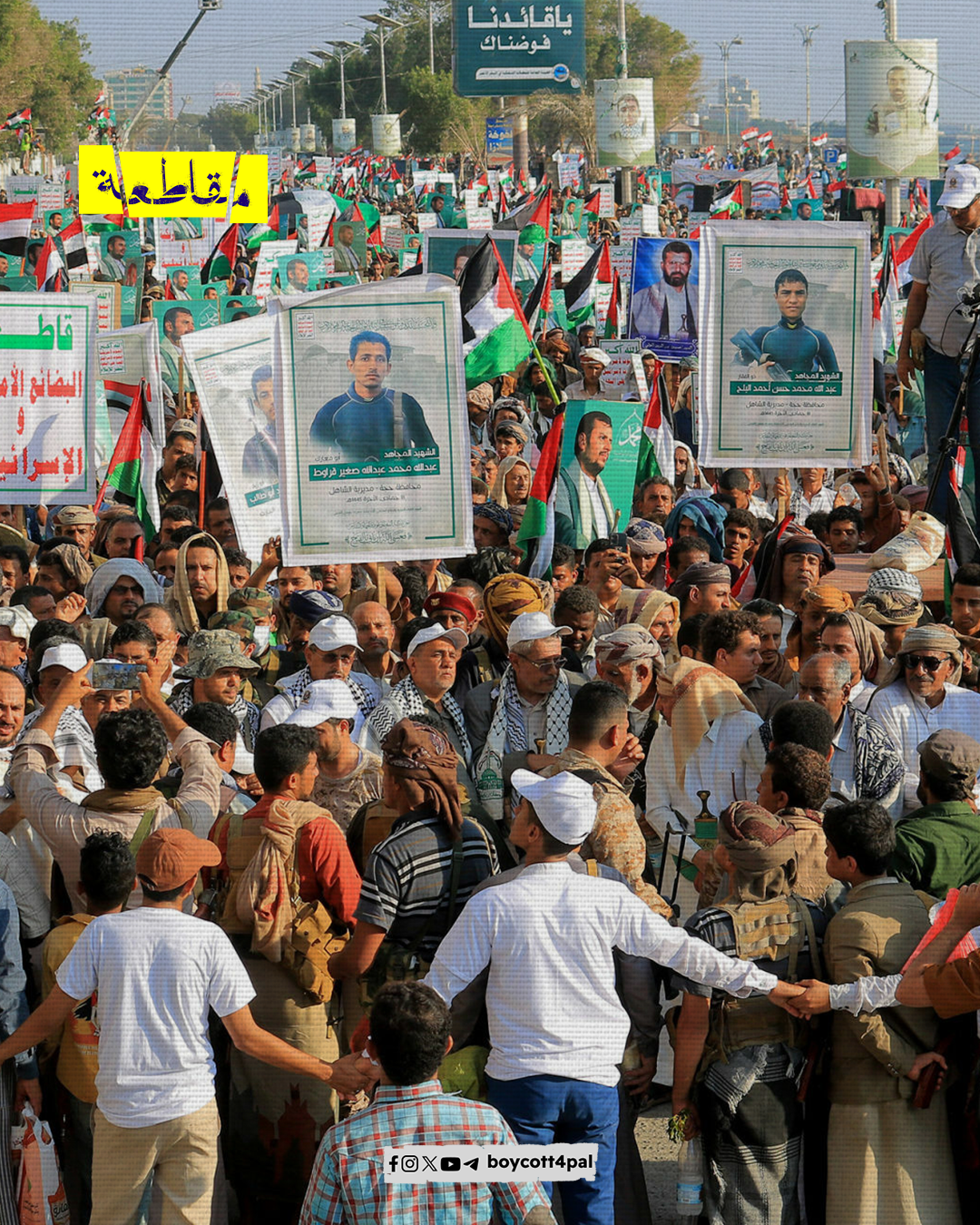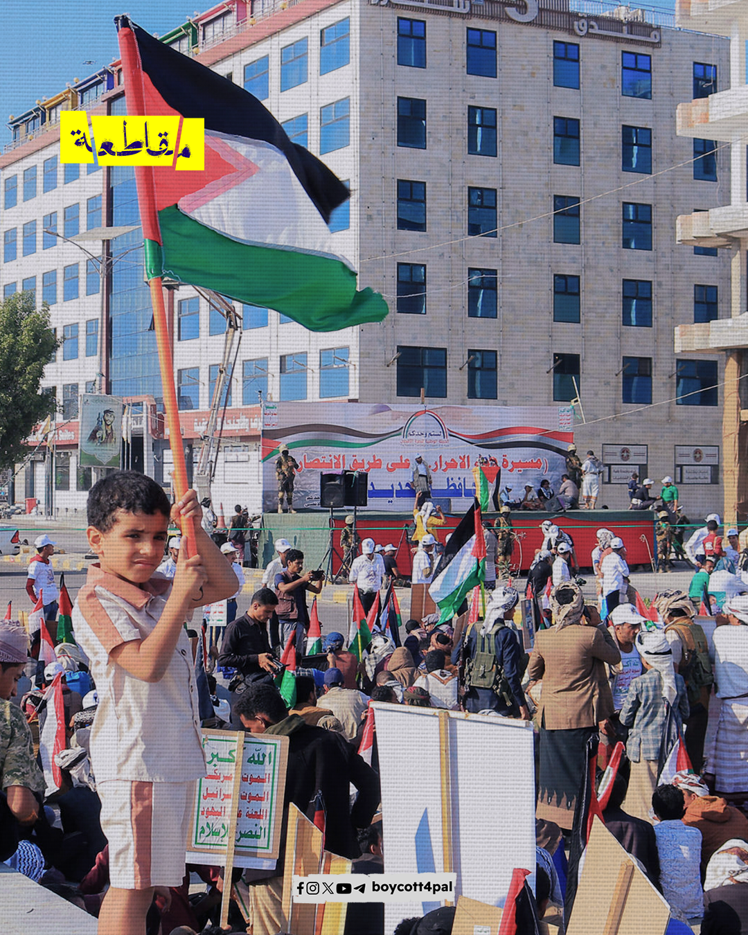 رفع المتظاهرون في مدينة الحديدة الساحلية على البحر الأحمر، الأعلام الفلسطينية واليمنية جنبًا إلى جنب، تضامنا مع غزة ورفضًا لهجمات الاحتلال الإسرائيلي على المدنيين.
