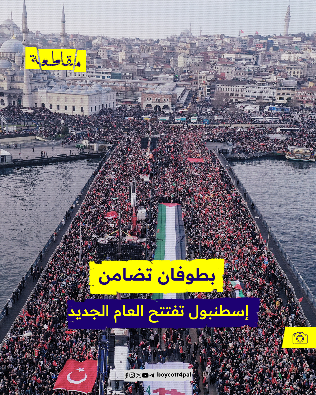 شارك عشرات آلاف المواطنين الأتراك صباح اليوم في مظاهرة حاشدة انطلقت عقب صلاة الفجر من مسجدي آيا صوفيا والسلطان أحمد بمدينة اسطنبول، نحو جسر غلطة التاريخي، تضامنًا مع الشعب الفلسطيني في أول أيام العام الجديد.