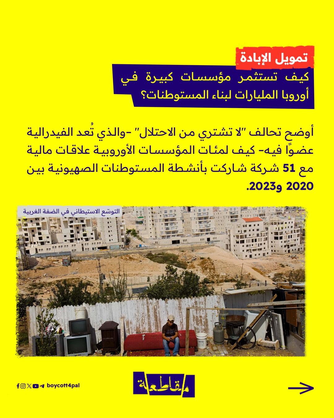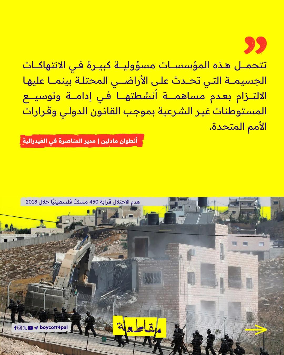 تقريرٌ جديد أعدته الفيدرالية الدولية يعكس التورّط الكبير لشركات أوروبية معروفة عالميًا في تمويل الإبادة المرتكبة على يد الاحتلال في غزة من جهة، وبناء المستوطنات غير القانونية على الأراضي الفلسطينية المحتلة، من جهةٍ ثانية.