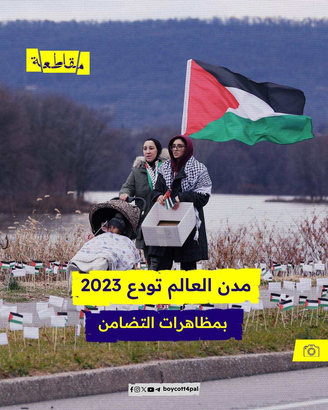 عامٌ كاملٌ مضى، ظلّت مدن العالم وعواصمه، بشوارعها وميادينها، حتى الساعات الأخيرة، تهتف لفلسطين، وترفع الصوت لوقف الإبادة.. هكذا ودعنا 2023 مع فلسطين وإلى جانبها في كل مكان.
