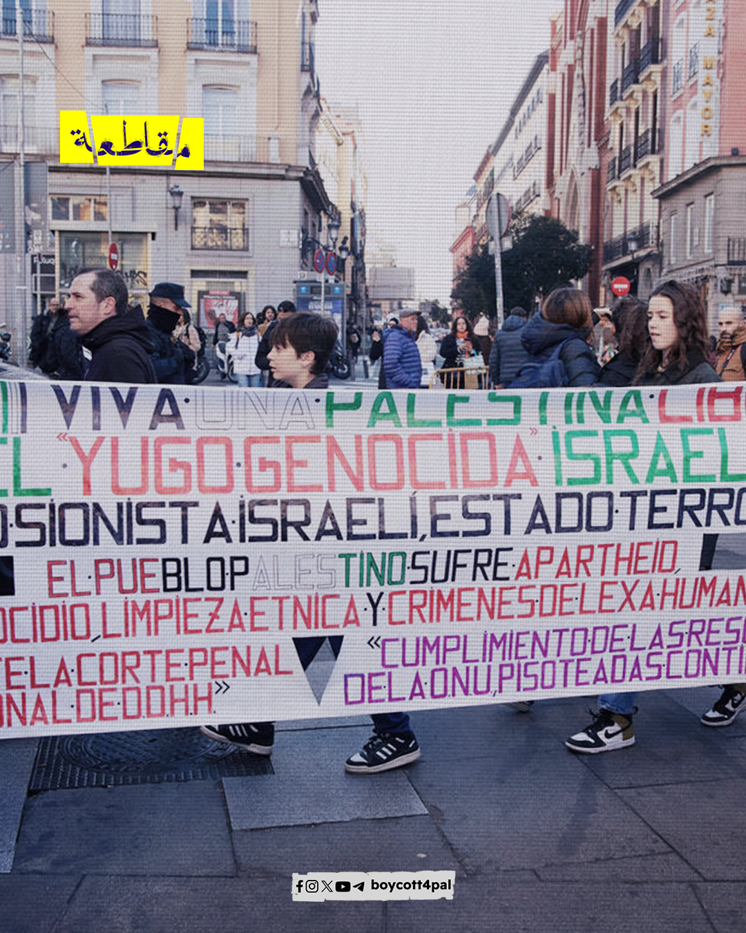 لبّى متضامنون مع فلسطين دعوة "الجبهة الأممية المناهضة للإمبريالية" لمظاهرة تحت شعار "مدريد مع فلسطين" أمام وزارة الخارجية الإسبانية في المدينة، وذلك للمطالبة بوقف الإبادة الجماعية في غزة وقطع العلاقات مع الاحتلال.
