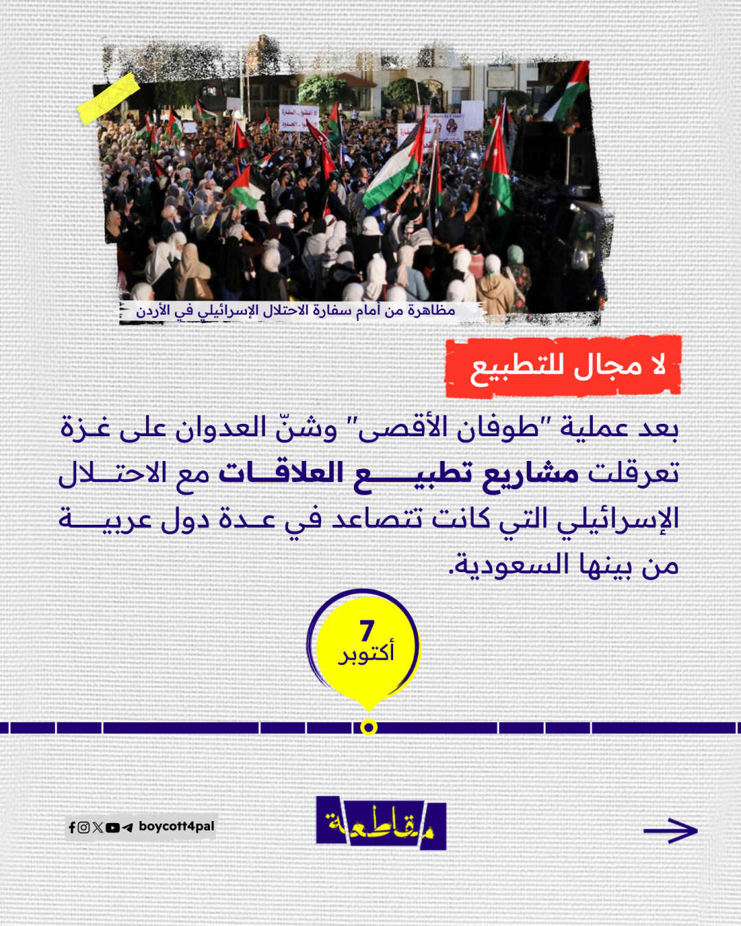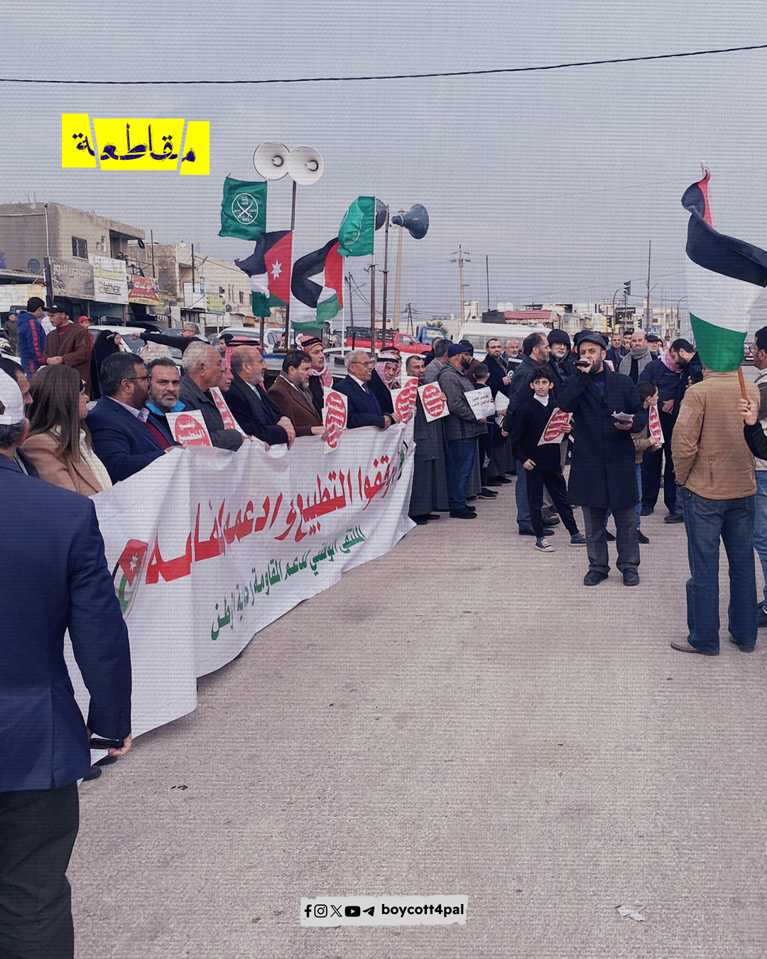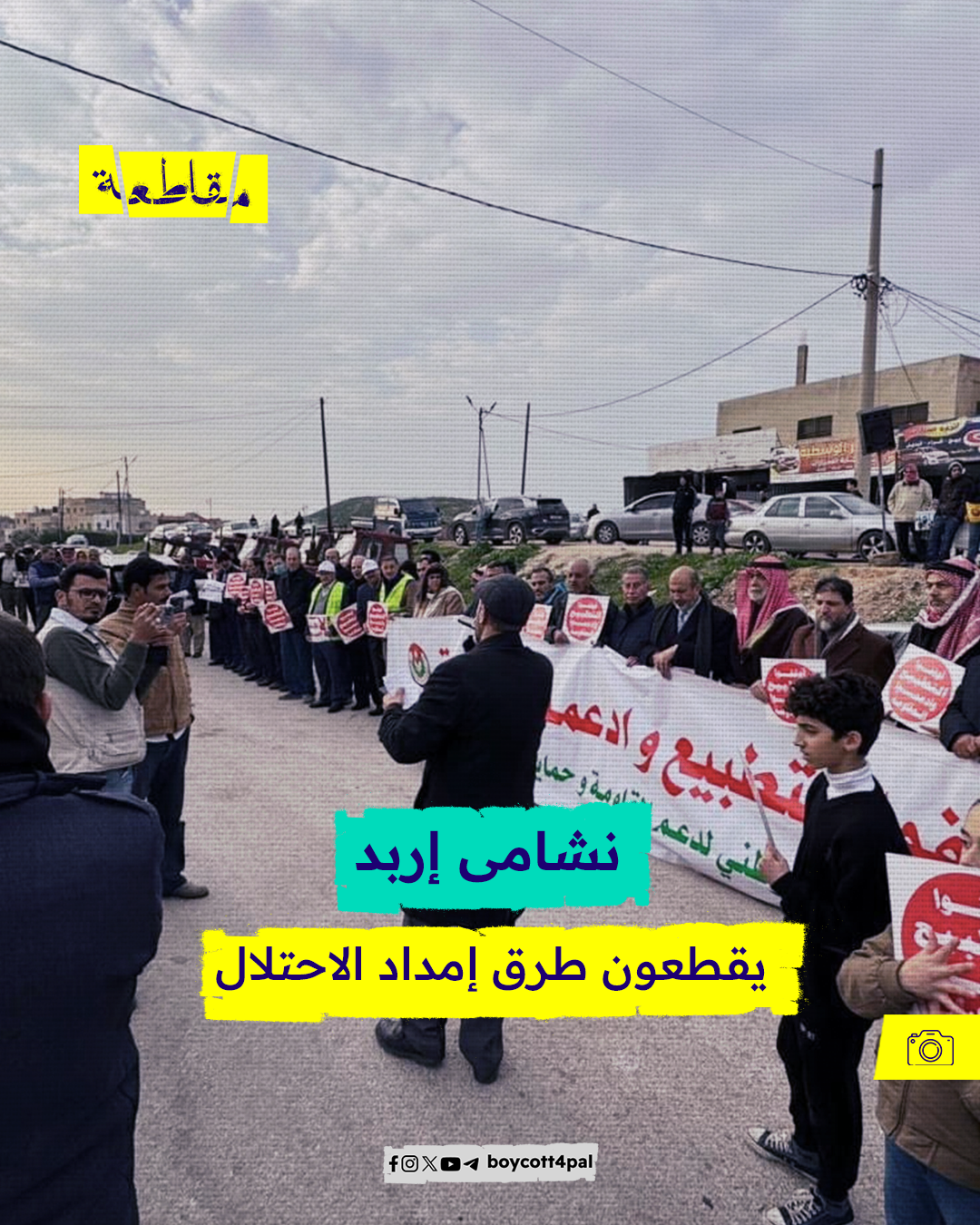 نفّذ ناشطون أردنيون وقفة في مدينة إربد للمطالبة بوقف جميع أشكال التصدير والاستيراد للكيان الصهيوني. وهذه ليست المرة الأولى التي تشهد فيها الأردن هذا النوع من التحركات إذ سبق وأن خرجت تظاهرات طالبت بقطع الإمدادات للاحتلال على رأسها الخضار.