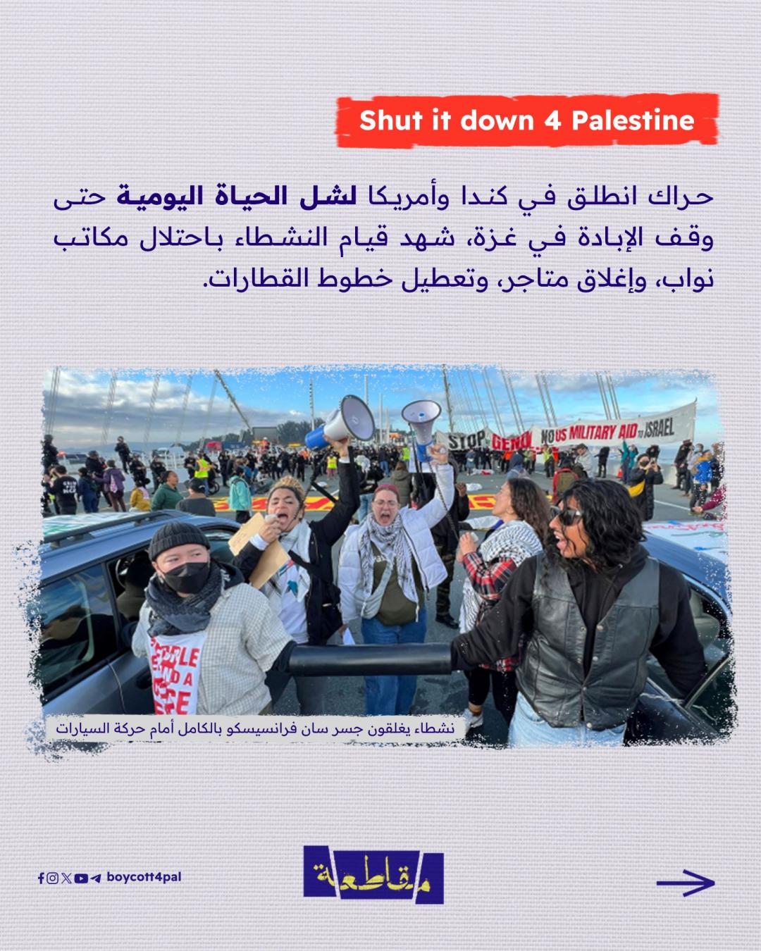سيطر عشرات المتضامنين مع القضية الفلسطينية، على جسر إدمنتون المؤدي إلى مركز ويست التجاري الضخم في المدينة الكندية، ضمن الفعاليات المتواصلة لعرقلة فعاليات التسوق والاحتفالات بالأعياد، تذكيرًا بالإبادة المتواصلة في غزة.