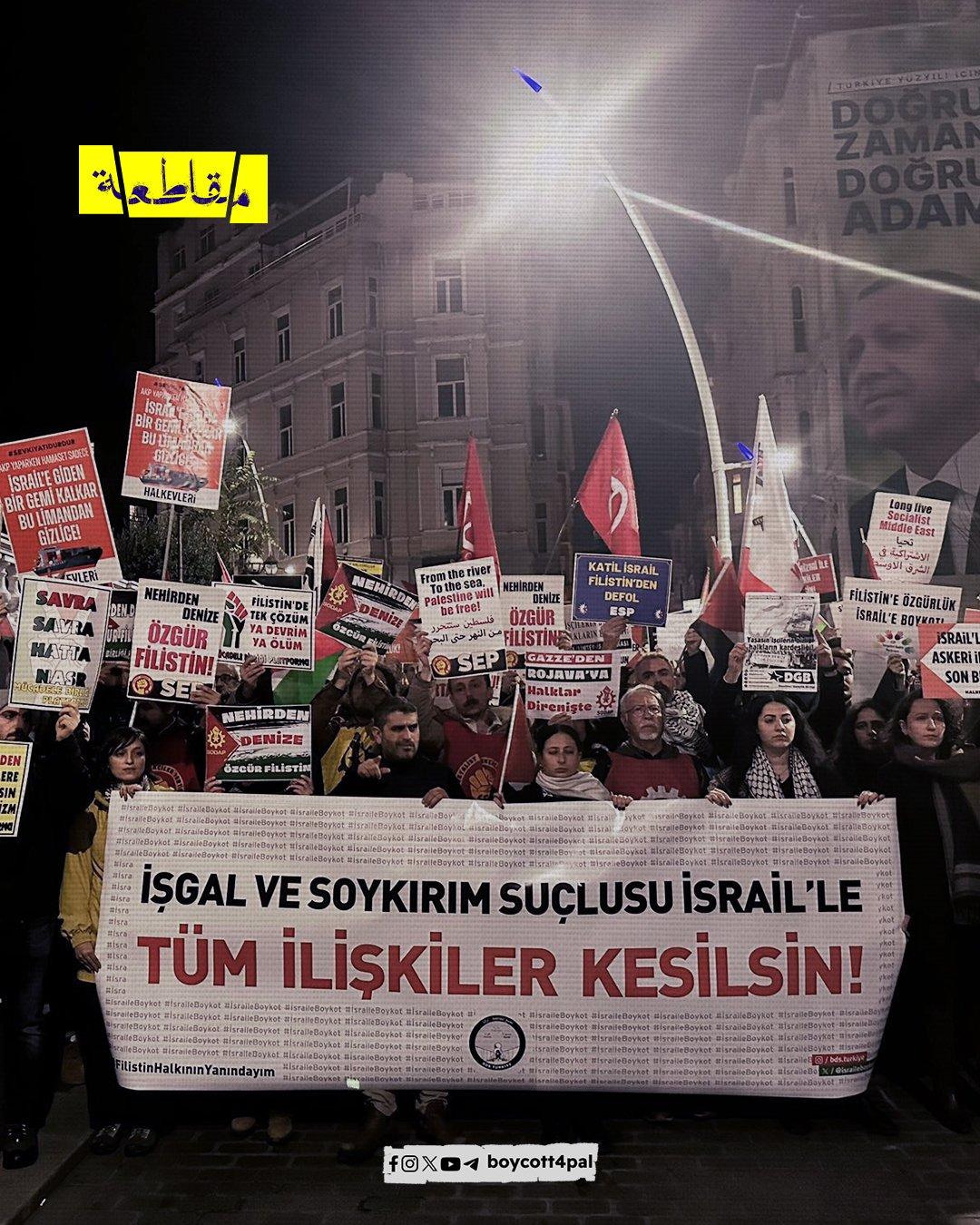 أكدت الحركة في بيان مسيرتها التي انطلقت في اسطنبول أن "تركيا رفعت صوت المقاطعة ضد الاحتلال الصهيوني وجعلته قويًا حتى اليوم"، لذا فإنها "تستمع إلى نداءات الشعب الفلسطيني وتعمل على تنامي هذا النضال منذ الذكرى الأولى لهجوم الرصاص المصبوب على غزة عام 2008".