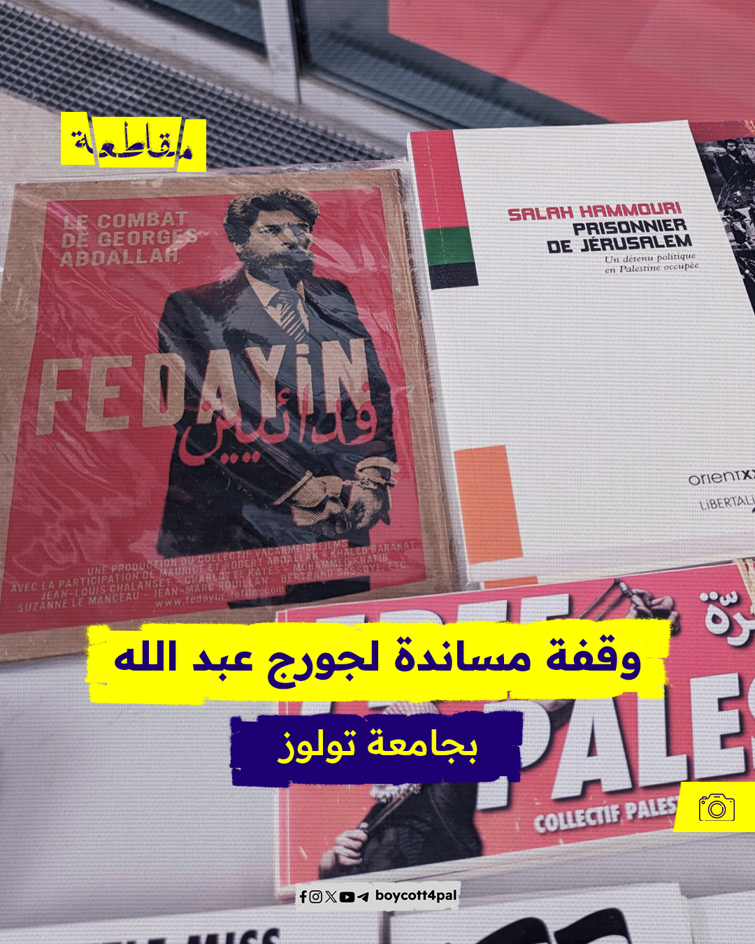 نظّمت رابطة فلسطين ستنتصر وقفة طلابية تضامنية في جامعة “تولوز جان جور إيرس” أمس؛ للمطالبة بالإفراج عن الناشط جورج عبدالله المعتقل في السجون الفرنسية منذ 39 عامًا على خلفية دعمه لفلسطين، يأتي ذلك ضمن فعاليات الشهر الدولي للتعبئة من أجل تحرير "عبدالله".