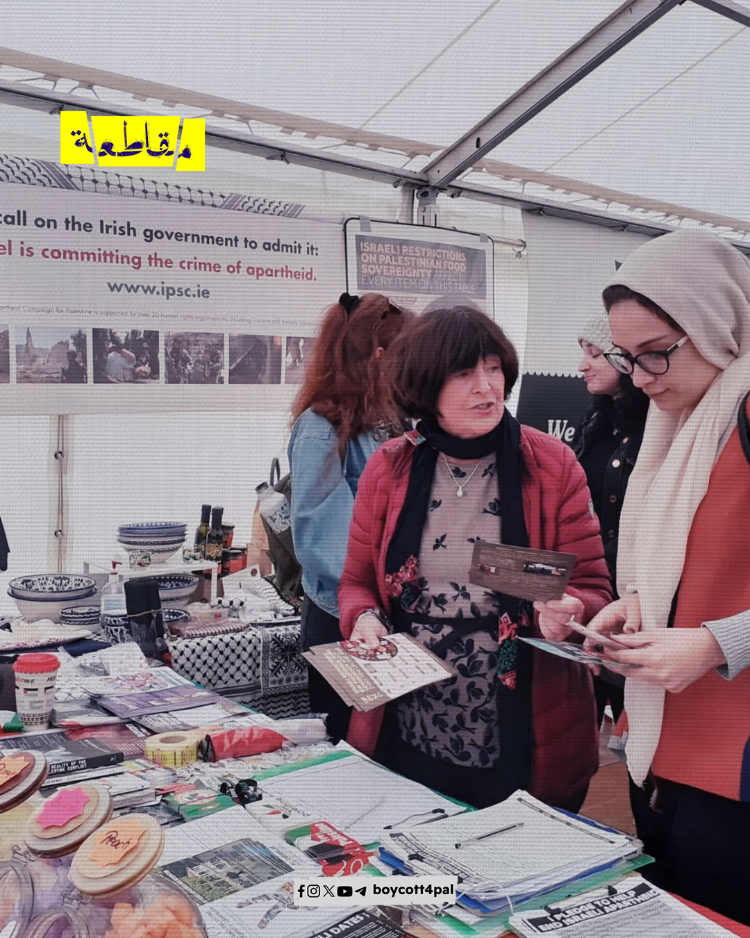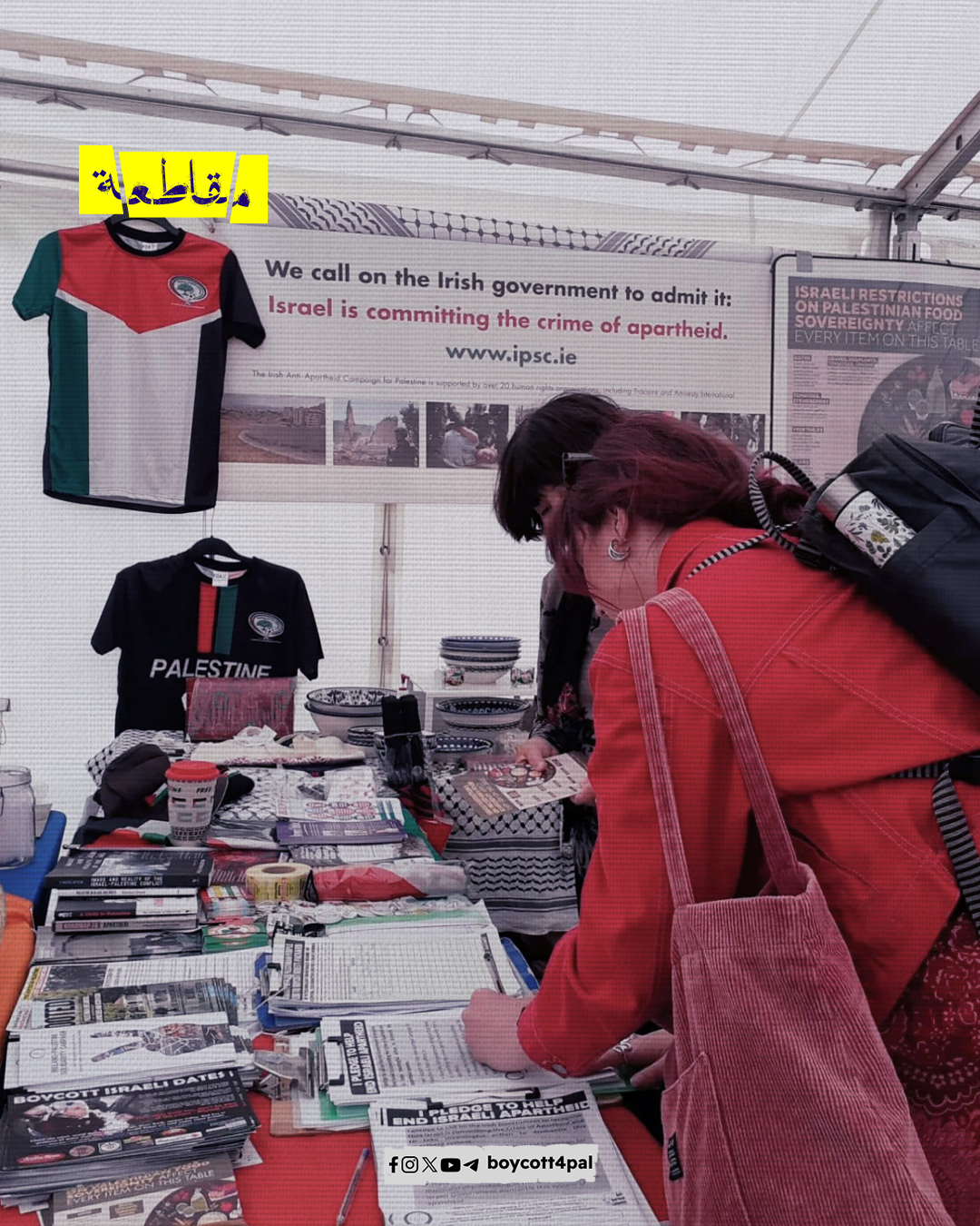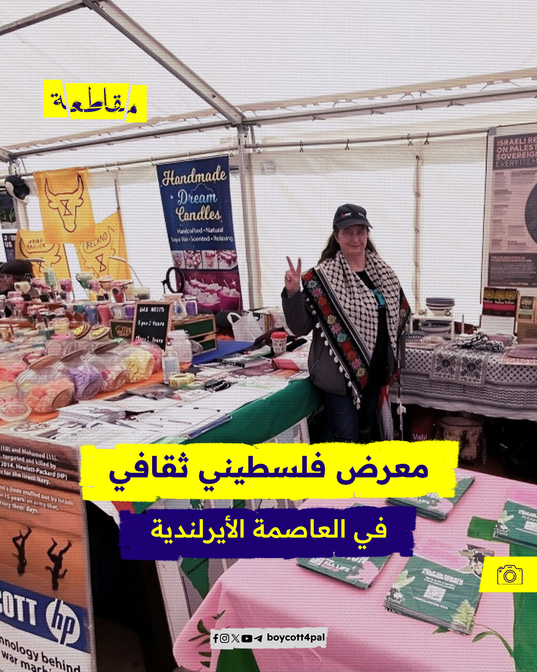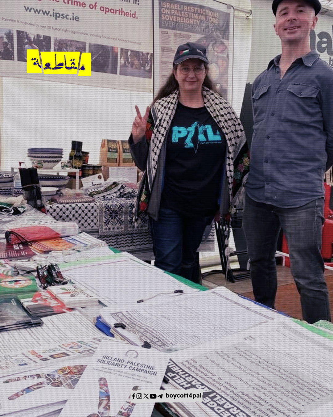 نظّمت حملة التضامن الأيرلندي الفلسطيني معرضًا للتوعية بالقضية الفلسطينية في العاصمة دبلن، وتضمن المعرض زوايا ثقافية شملت الطعام والمشغولات اليدوية والكتب الفكرية الفلسطينية، كما دعت الحملة للمشاركة في فعالية تضامنية تنظمها اليوم في نادي ويكسفورد لكرة القدم.