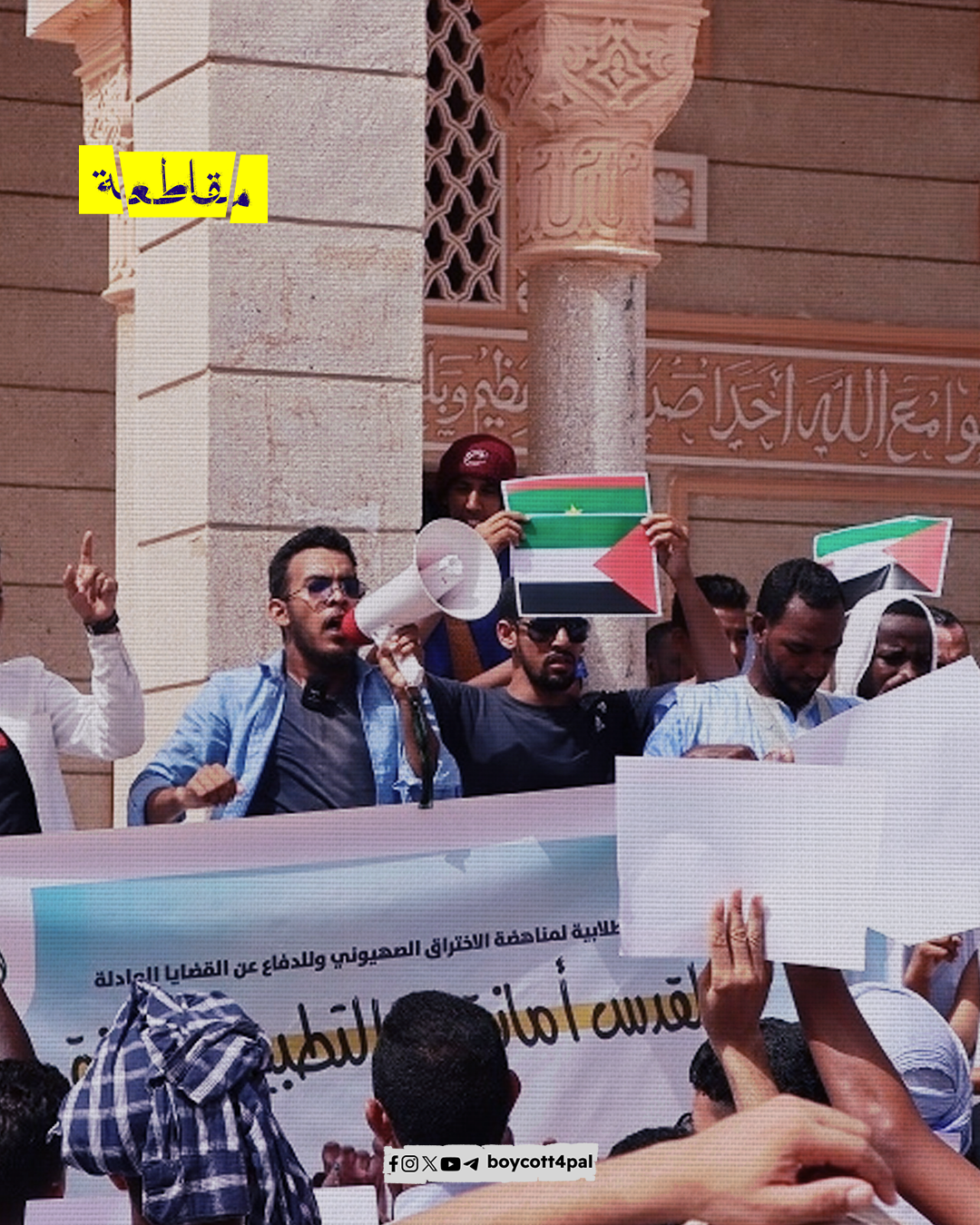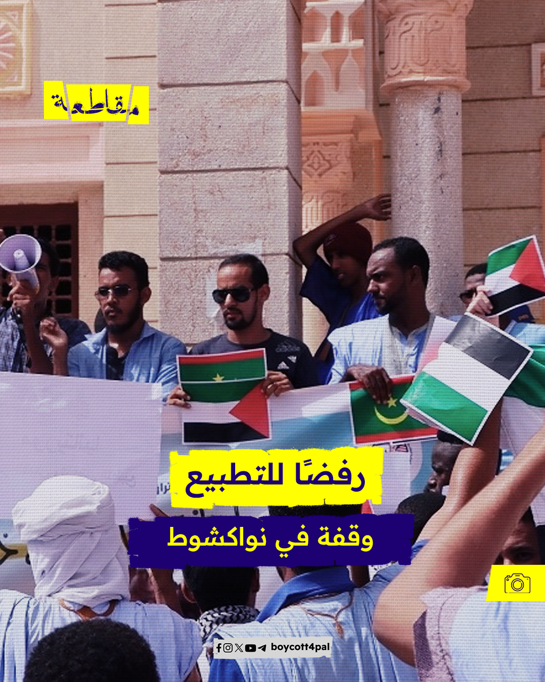 شارك عشرات النشطاء الموريتانيين في وقفة احتجاجية نظمتها المبادرة الطلابية لمناهضة التطبيع أمام المسجد السعودي في نواكشوط أمس، ورفع المحتجون لافتات منددة بالتطبيع وداعمة للقدس، يأتي ذلك في ظل تواصل الجهود الأمريكية لإتمام التطبيع السعودي بالتزامن مع تصاعد العدوان ضد المسجد الأقصى.