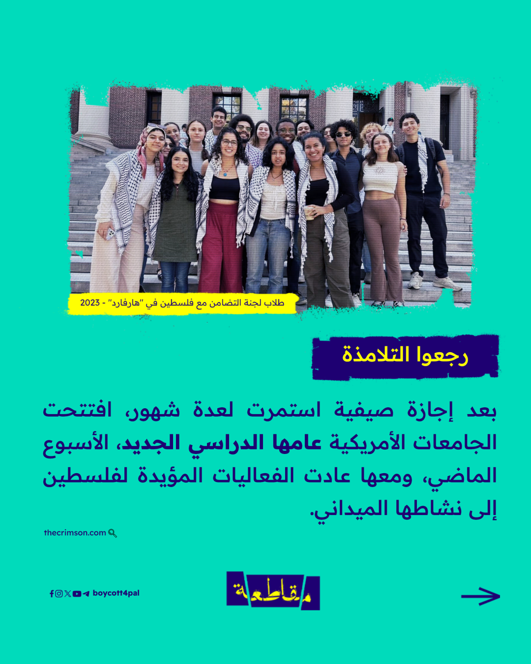 عادوا بعد انقطاع لشهور نتيجة الإجازة الصيفية، وأشعلوا العام الدراسي مبكرًا بالفعاليات المؤيدة لفلسطين منذ اليوم الأول.