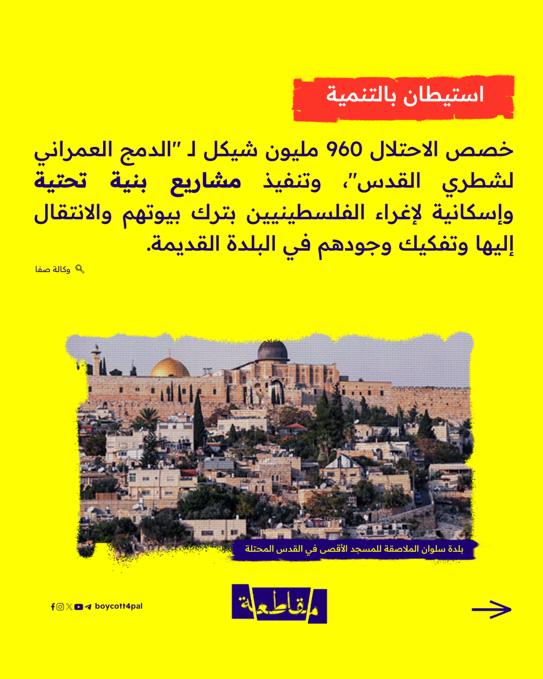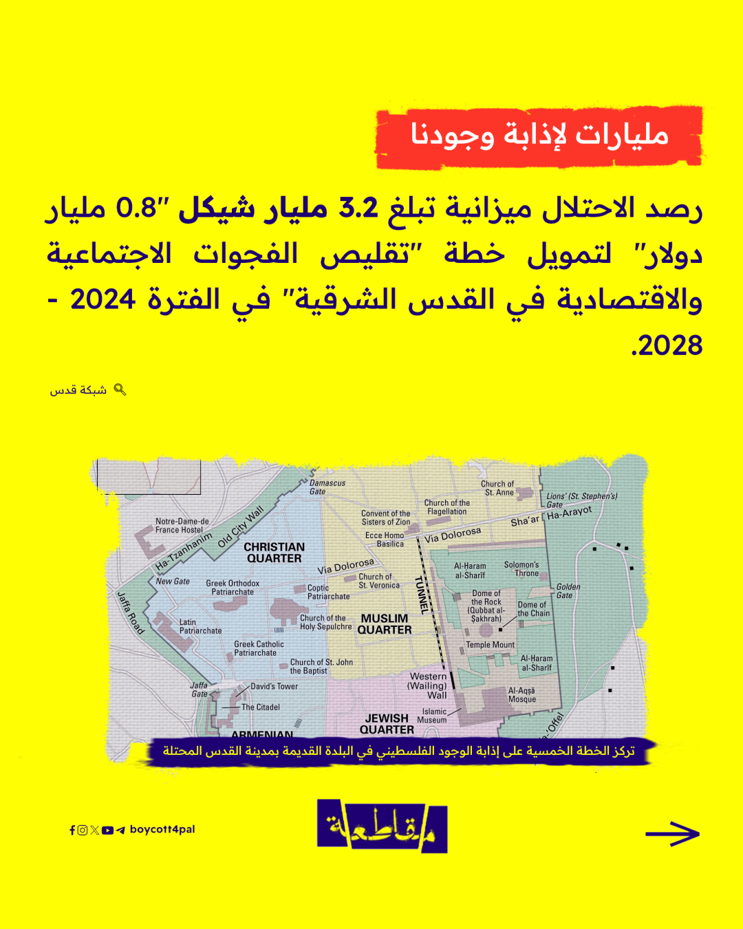 رصد فيها الاحتلال ملايين الدولارات، ويستهدف ضرب عمق الوجود الفلسطيني في القدس المحتلة، وإذابة الهوية الفلسطينية وتفكيك مفاصل صمود المقدسيين.
