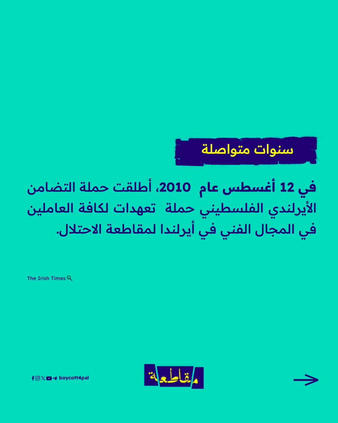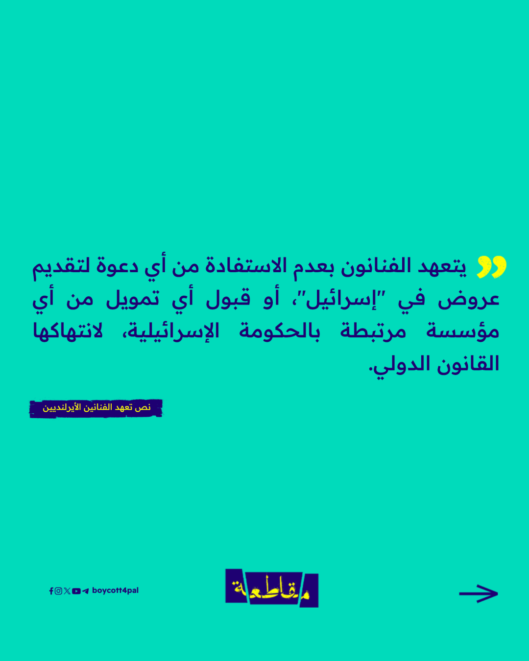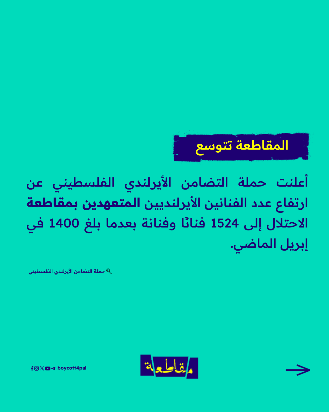 بعد 13 عام على ميلاد التعهد، احتفت حملة التضامن الأيرلندي الفلسطيني بانضمام أكثر من ألف فنانًا للتوقيع على التعهد بمقاطعة الأبارتهايد الإسرائيلي خلال الأشهر الأربعة الأخيرة ليرتفع عدد المقاطعين إلى 1524 فنانًا وفنانة، وسط إقبال متزايد من قبل فناني أيرلندا والمقيمين فيها.