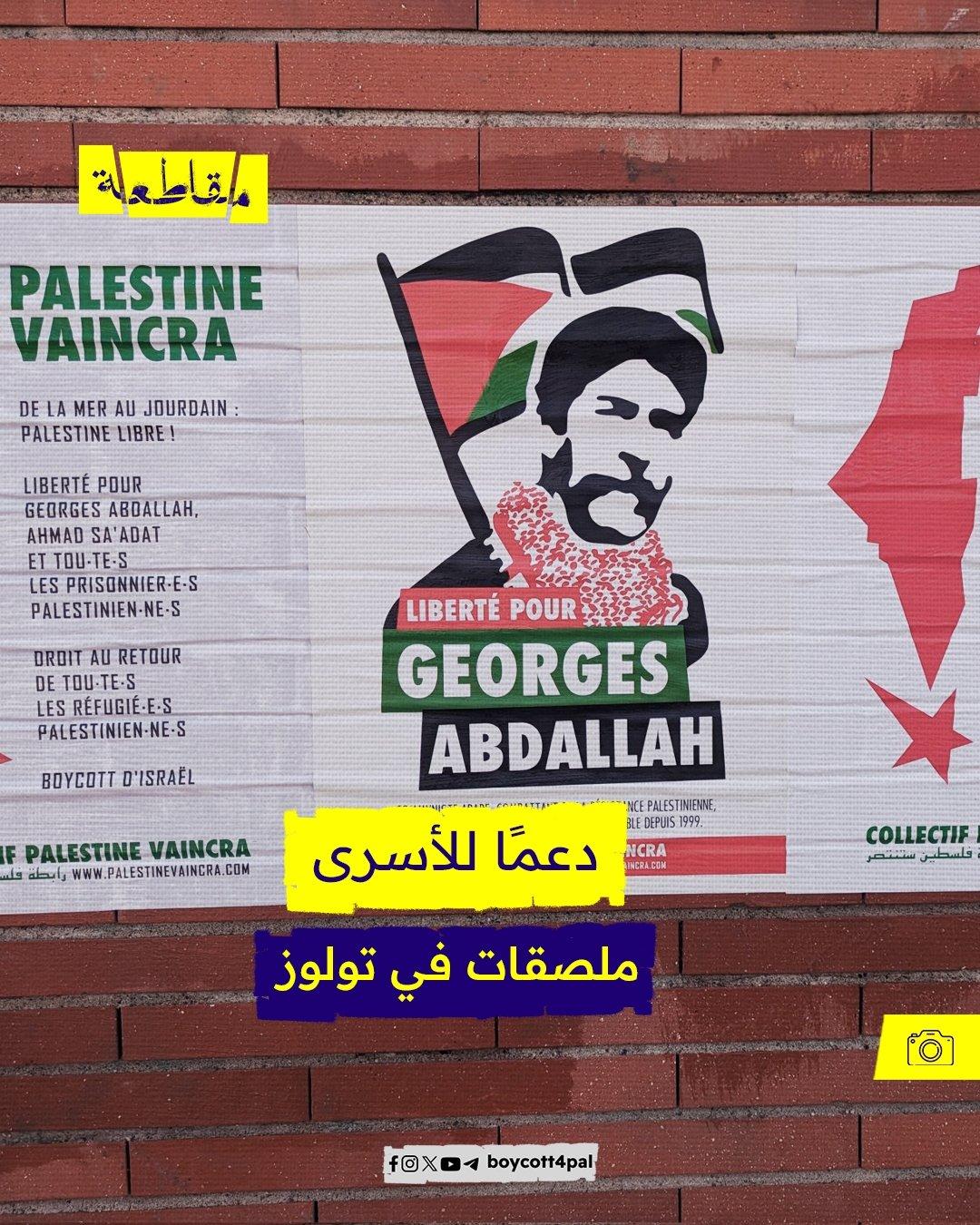رفع نشطاء رابطة فلسطين ستنتصر ملصقات تضامنية داعمة للأسرى في عدّة أحياء بمدينة تولوز الفرنسية وجامعة المدينة، للتعبير عن التضامن مع الأسرى في سجون الاحتلال والمعتقل السياسي في هولندا أمين أبو راشد، الذي تتهمه السلطات “بتمويل ودعم الإرهاب”.